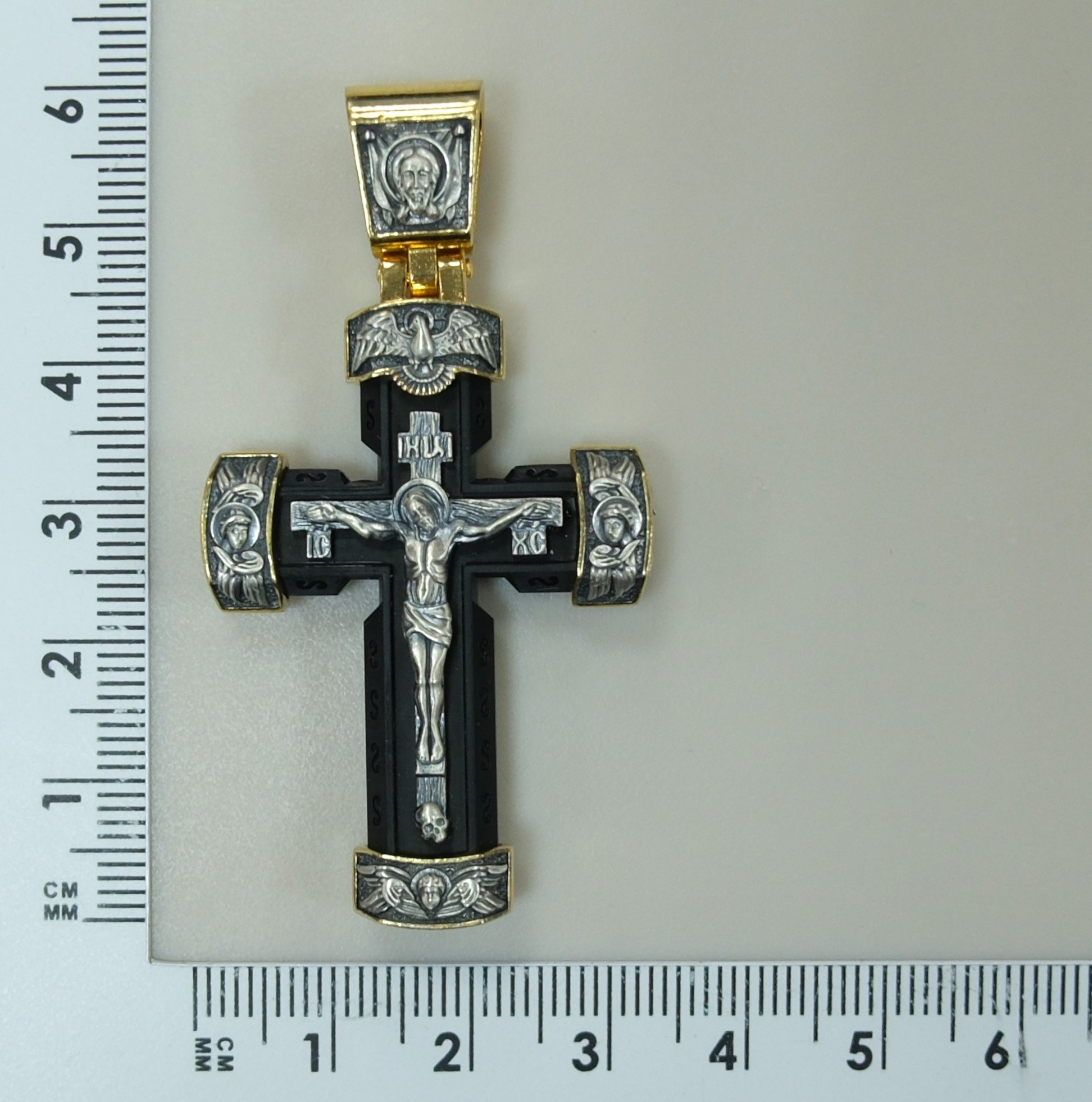 Серебряная подвеска-крест с полимером "Спаси и Сохрани"