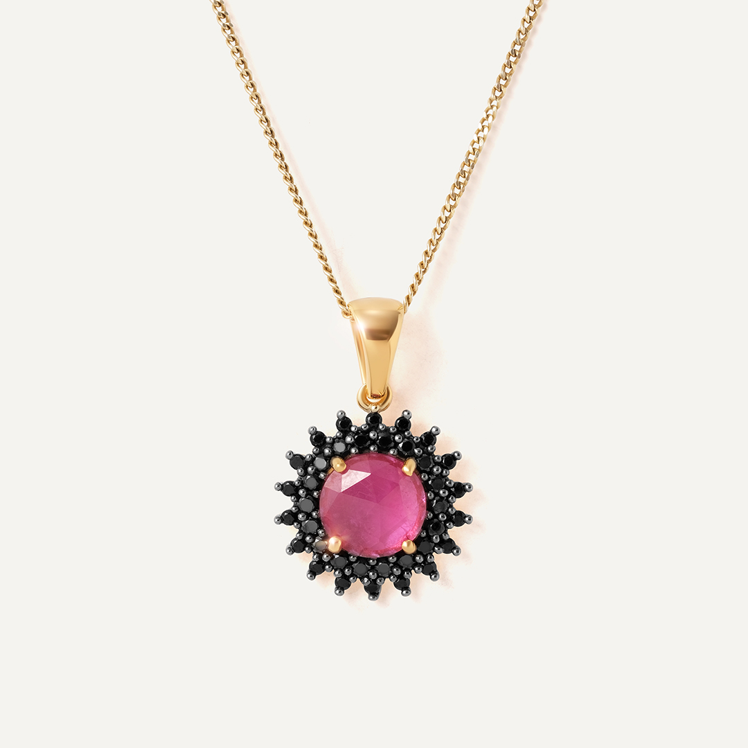 Серебряная подвеска с рубином и перидотами "Цветок"