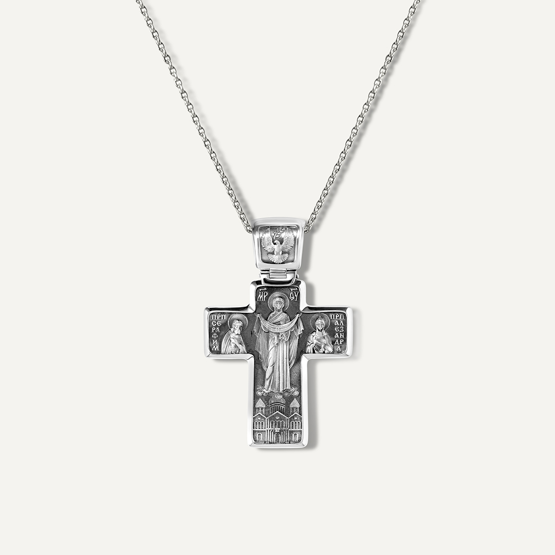 Серебряная подвеска-крест "Образ Божьей Матери Покрова"