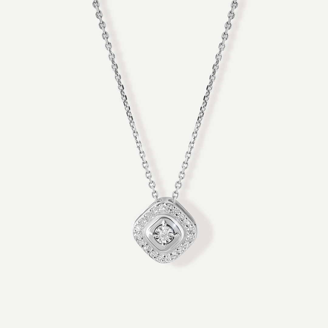 Золотая подвеска 585 пробы; белое золото; родий; вставки 1 Бр.Кр-57 0,014 3/6А; 6 Бр.Кр-57 0,024 3/6