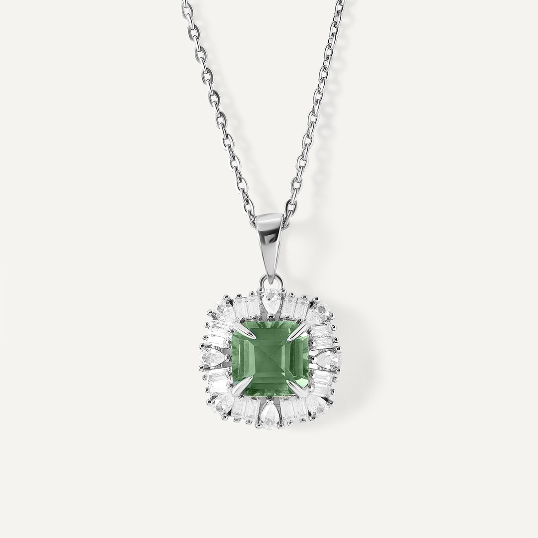Серебряная подвеска с зелеными бриллиантами