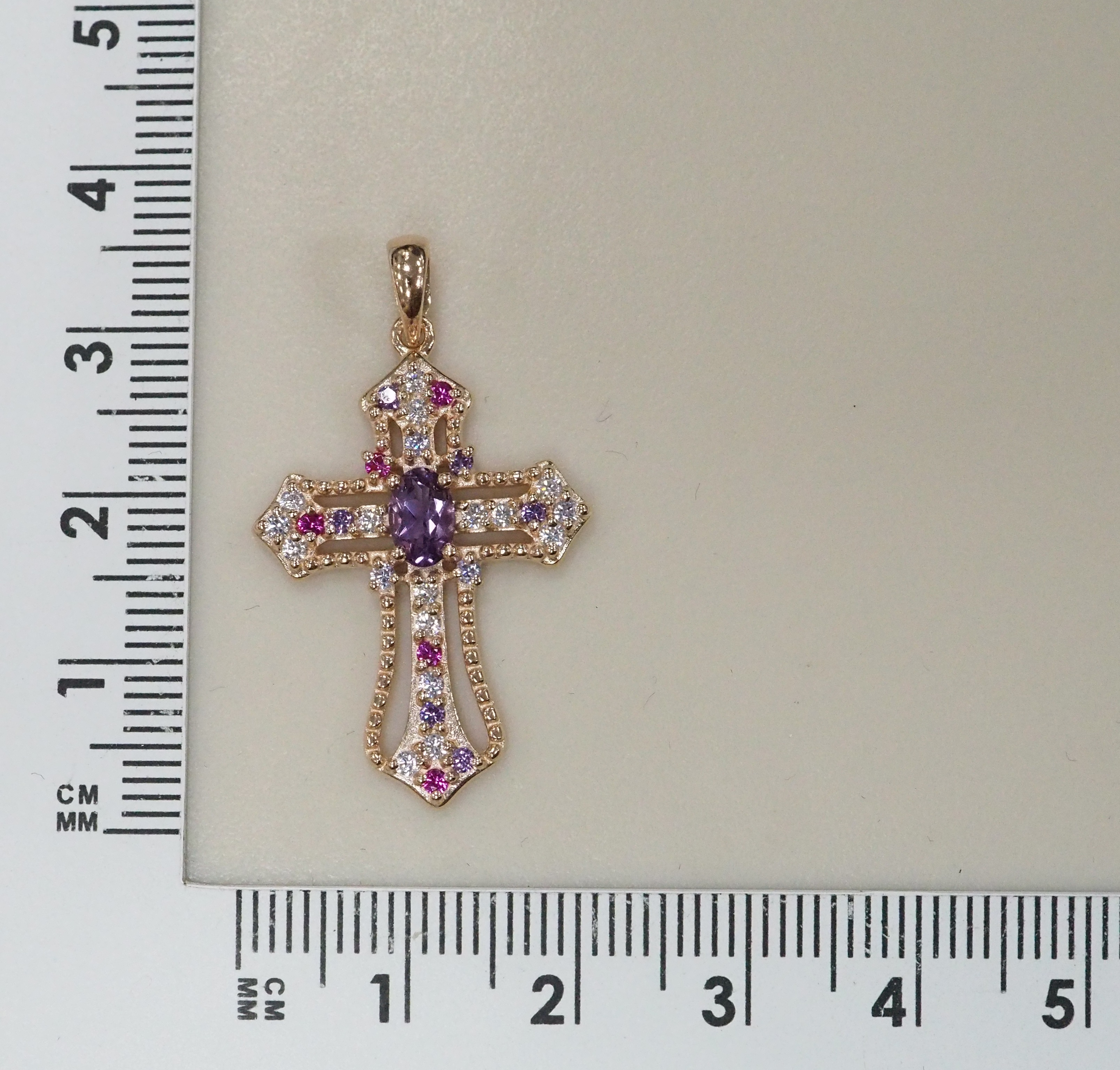 Серебряная подвеска-крест с аметистом