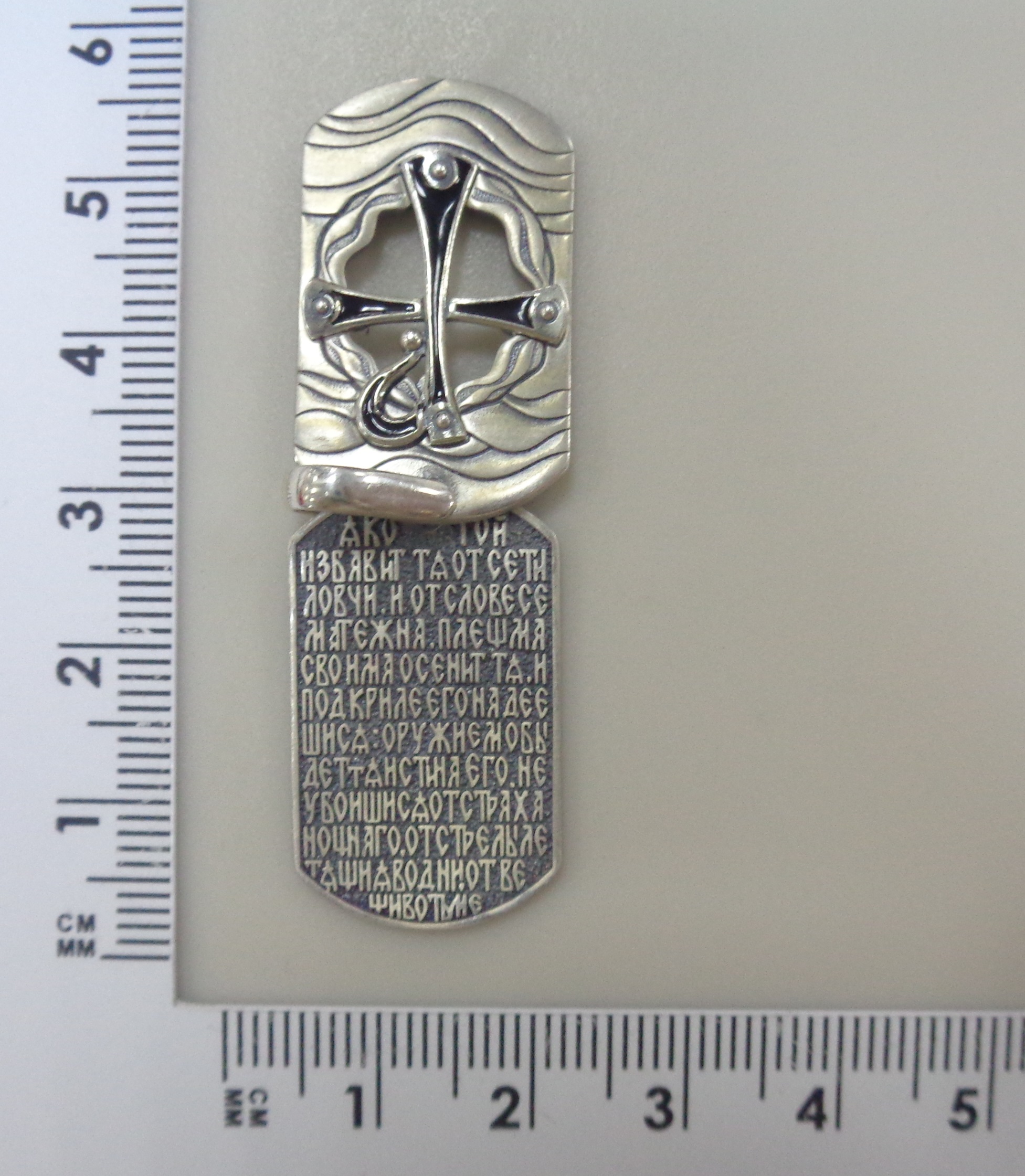 Серебряная подвеска с эмалью "Хризма/Псалом 90"