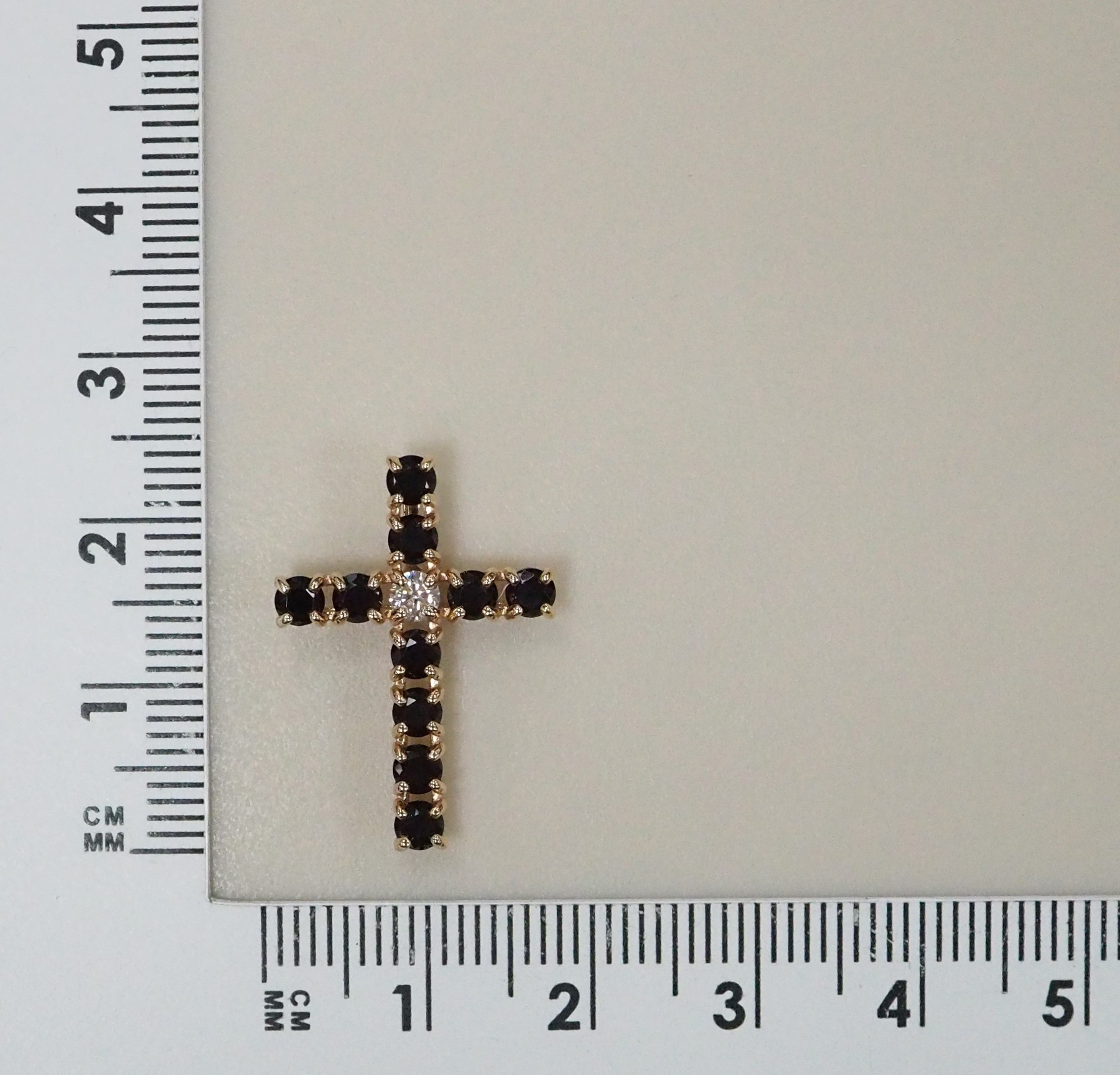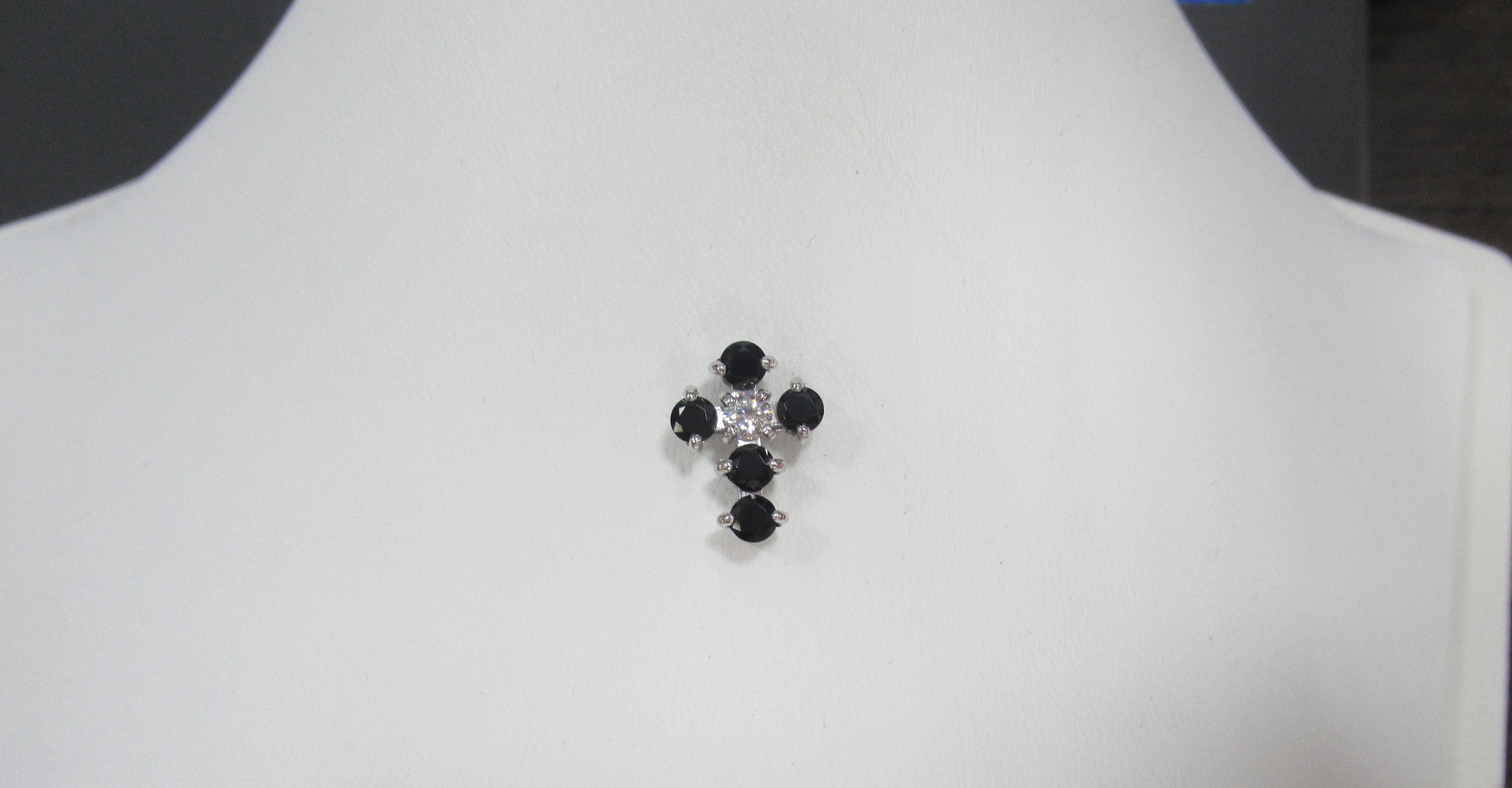 Серебряная подвеска-крест с муассанитом и черными турмалинами