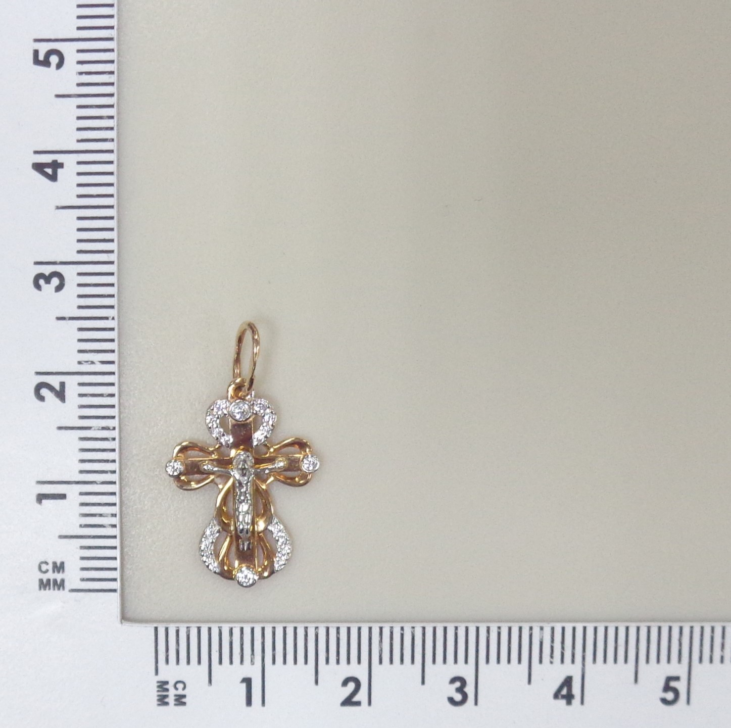 Золотая подвеска-крест 585 пробы; красное, белое золото; родий; вставки 20 Фианит бесцв.;