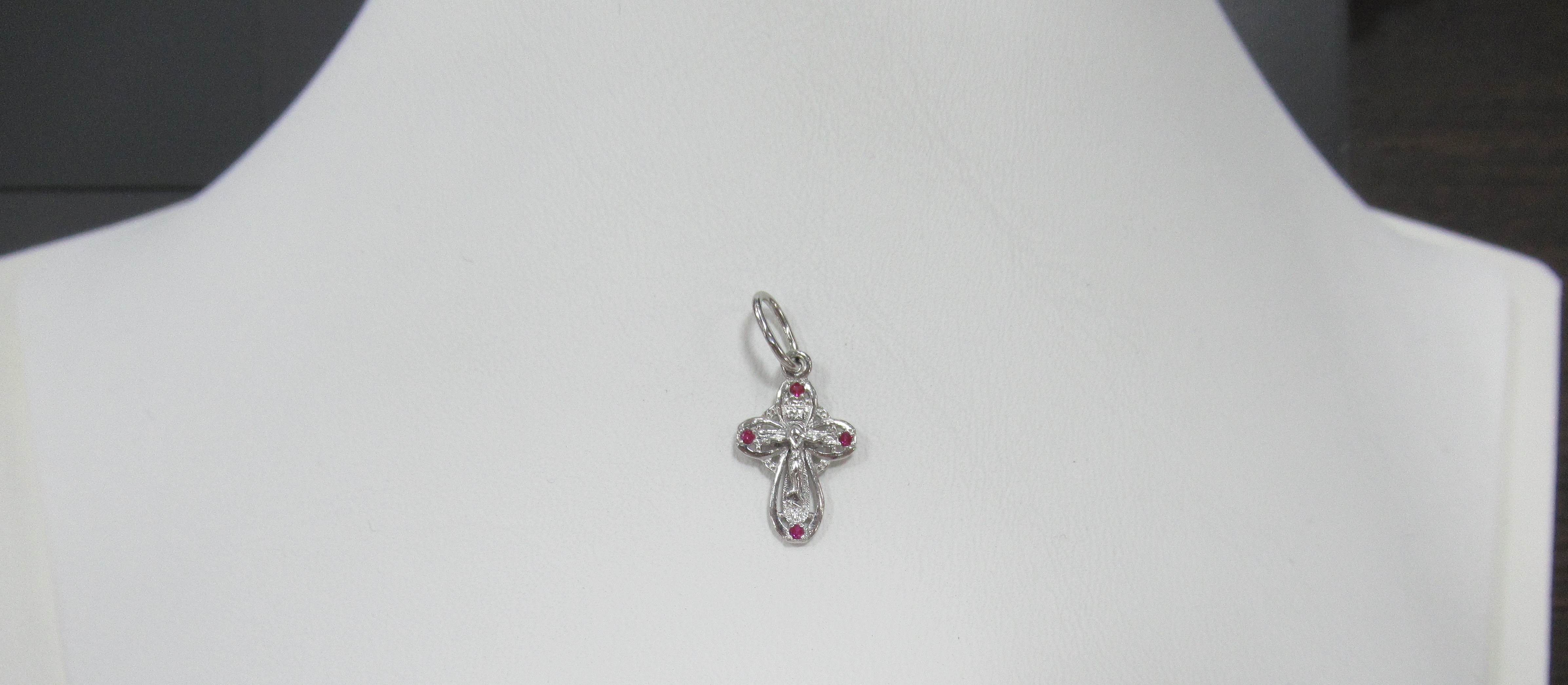 Серебряная подвеска-крест 925 пробы; вставки 4 Фианит розовый;