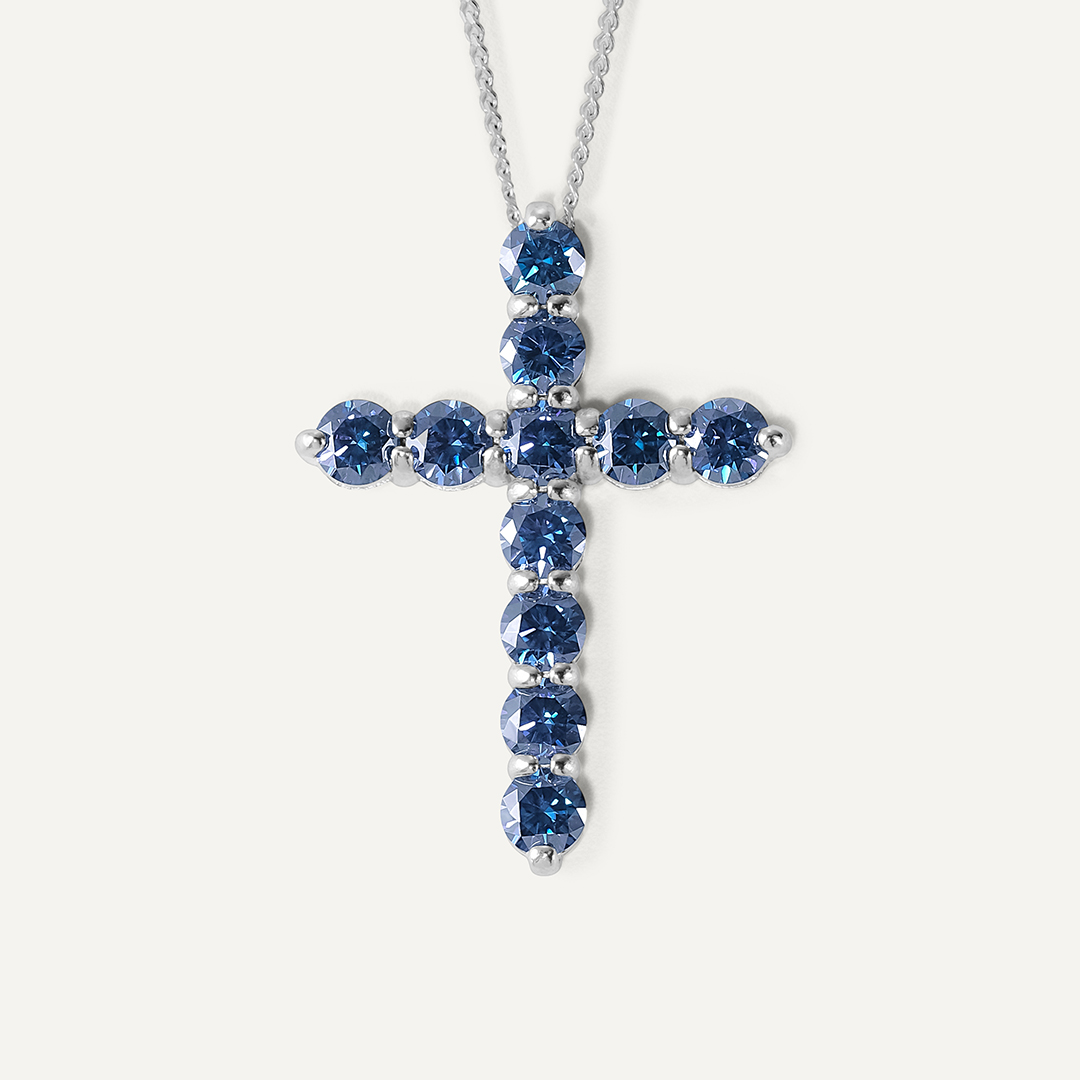 Серебряное колье с синими муассанитами "Крест"