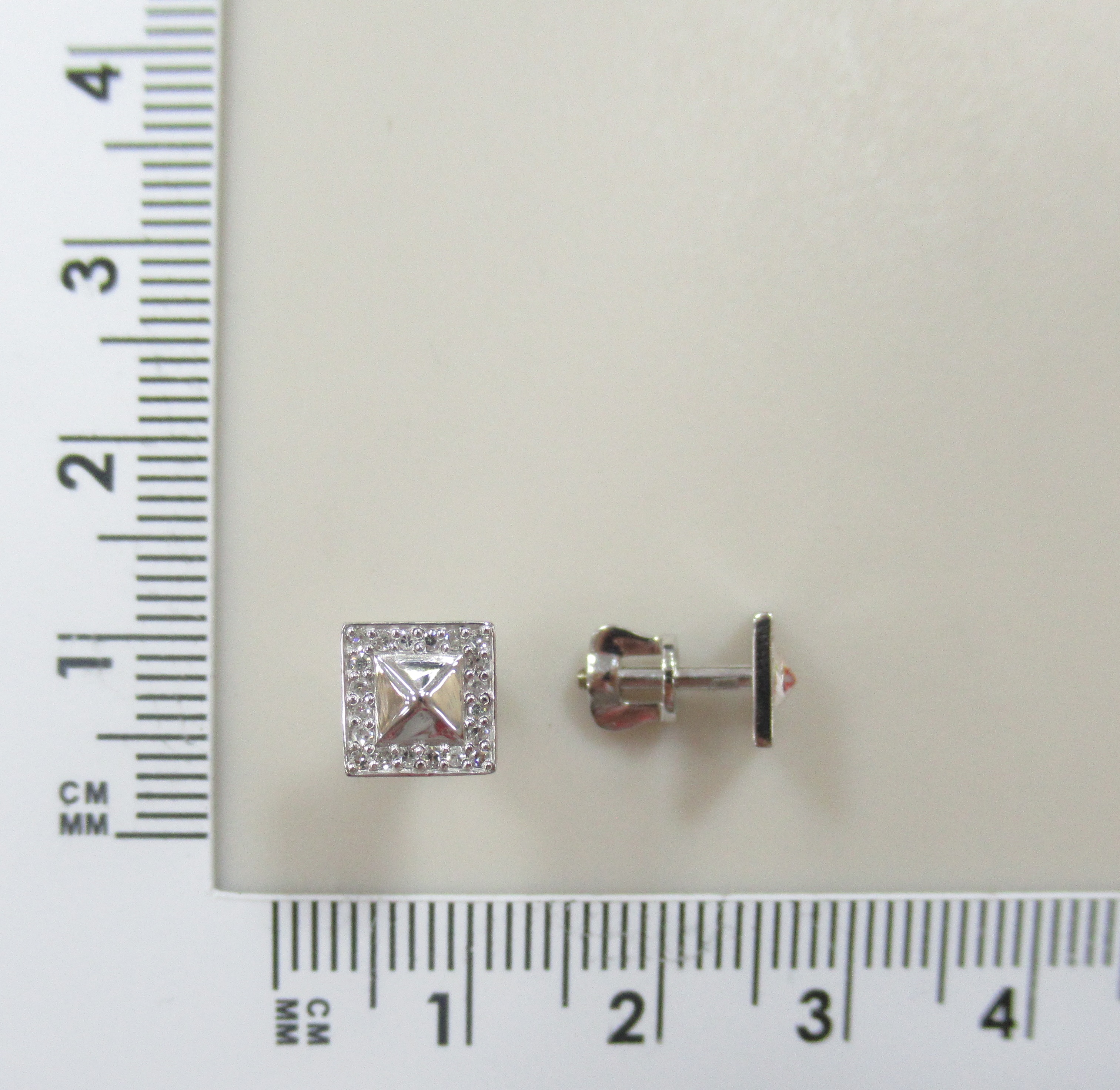 Серьги-пусеты из белого золота с фианитами