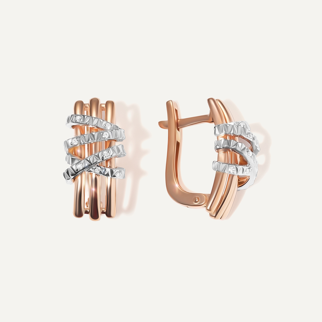Серьги-пусеты из белого золота с коньячными бриллиантами