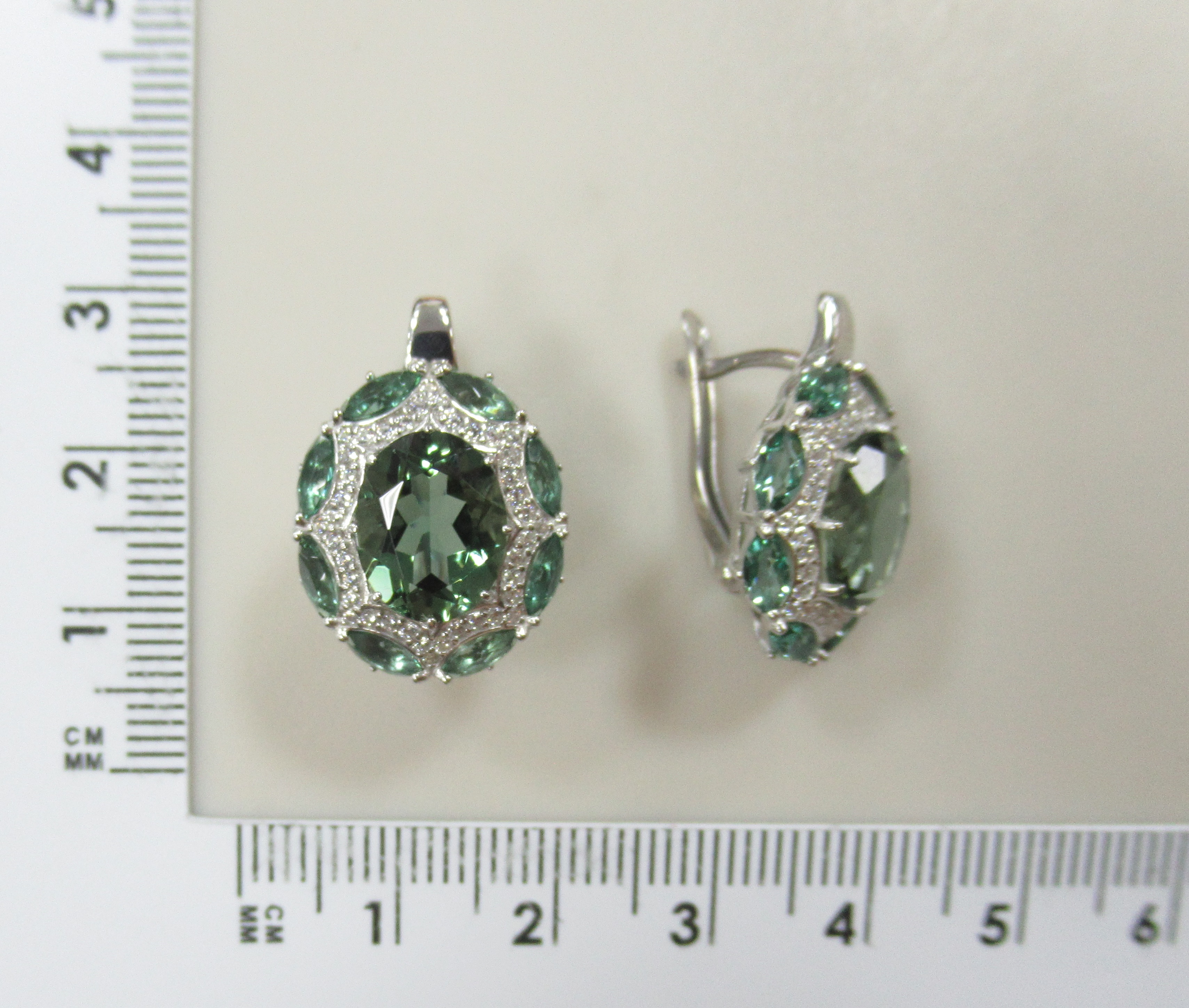Серебряные серьги с изумрудами, сапфирами и рубина...
