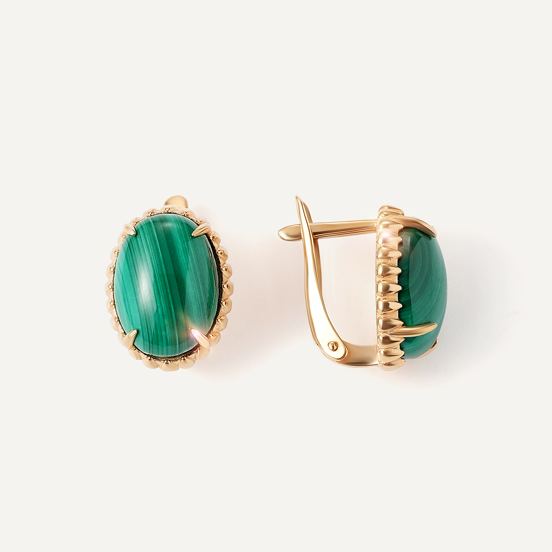 Серьги-пусеты из желтого золота с изумрудами и рубинами