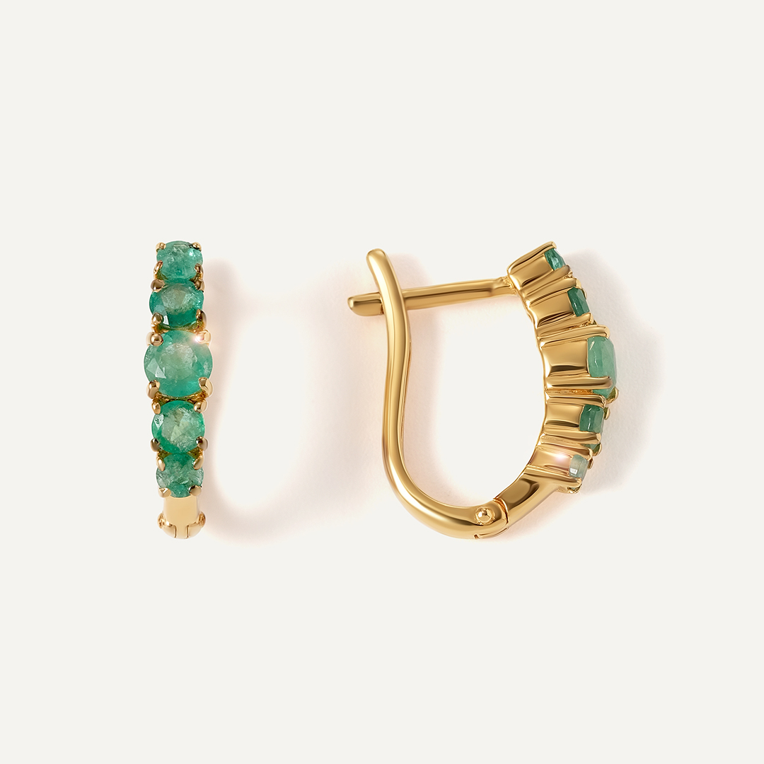 Серьги-пусеты из желтого золота с изумрудами и рубинами