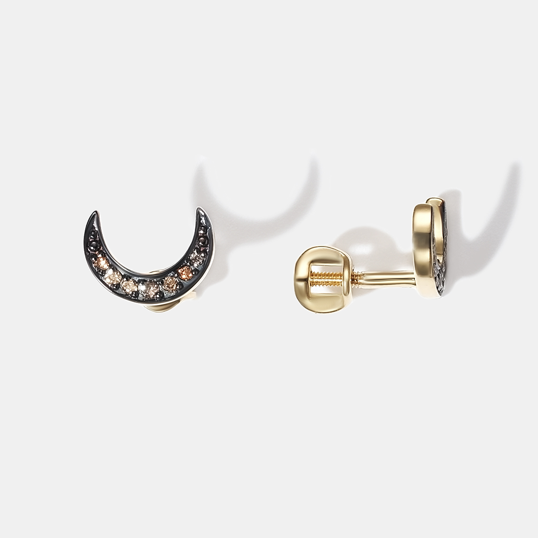 Серьги-пусеты из желтого золота с коньячными бриллиантами "Лунница"