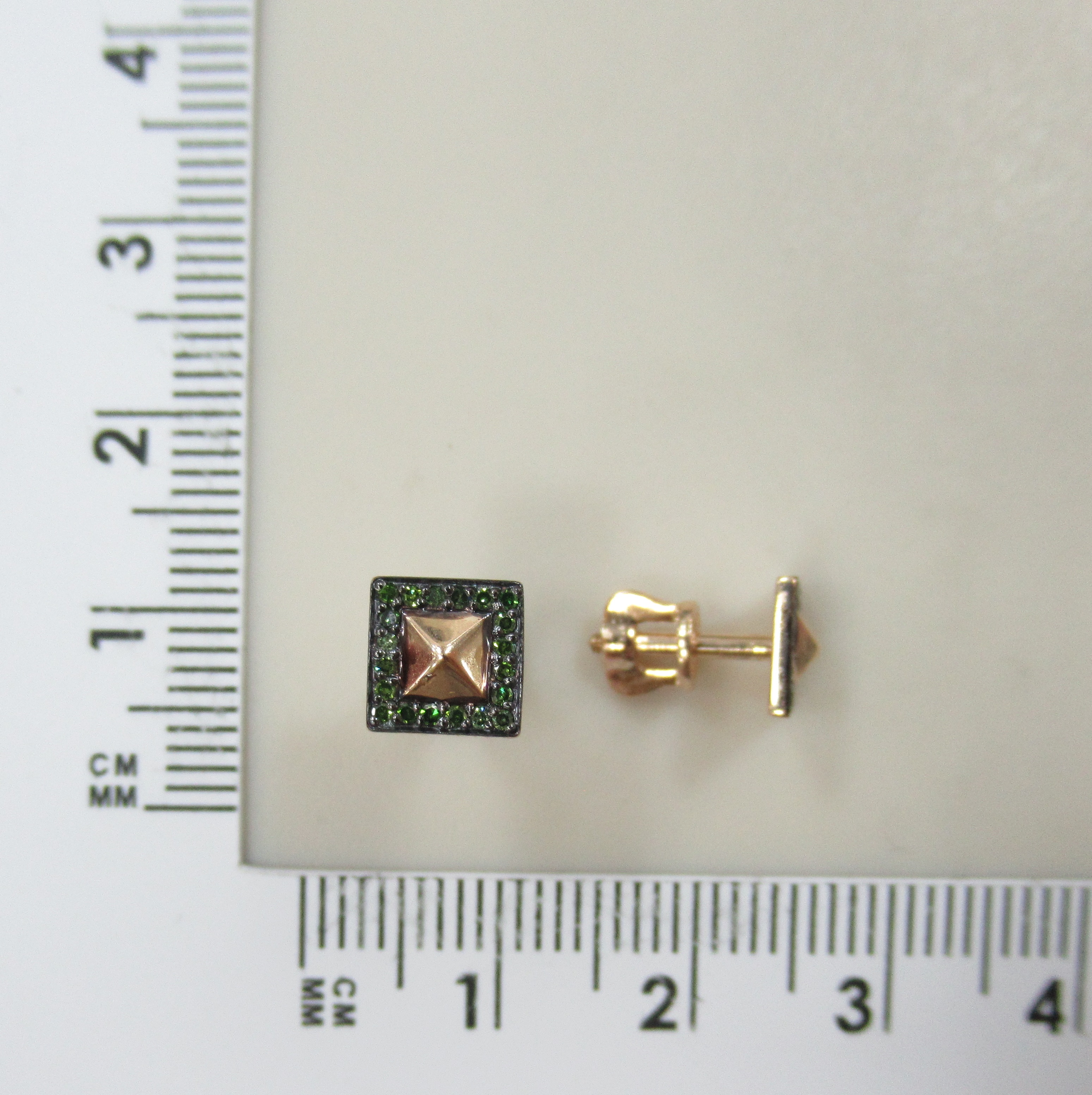Серьги-пусеты из белого золота с зелеными бриллиантами