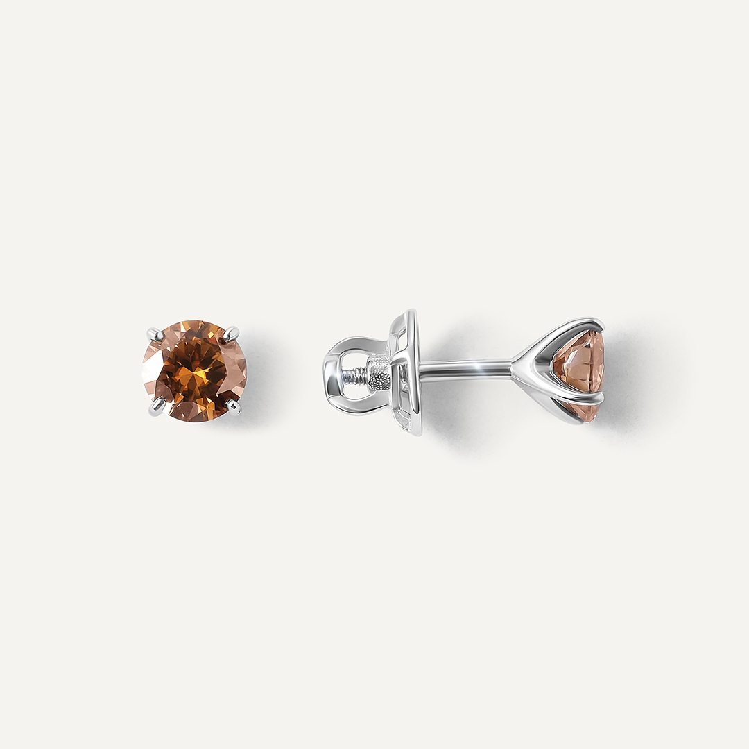 Серебряные серьги-пусеты с коричневыми муассанитами