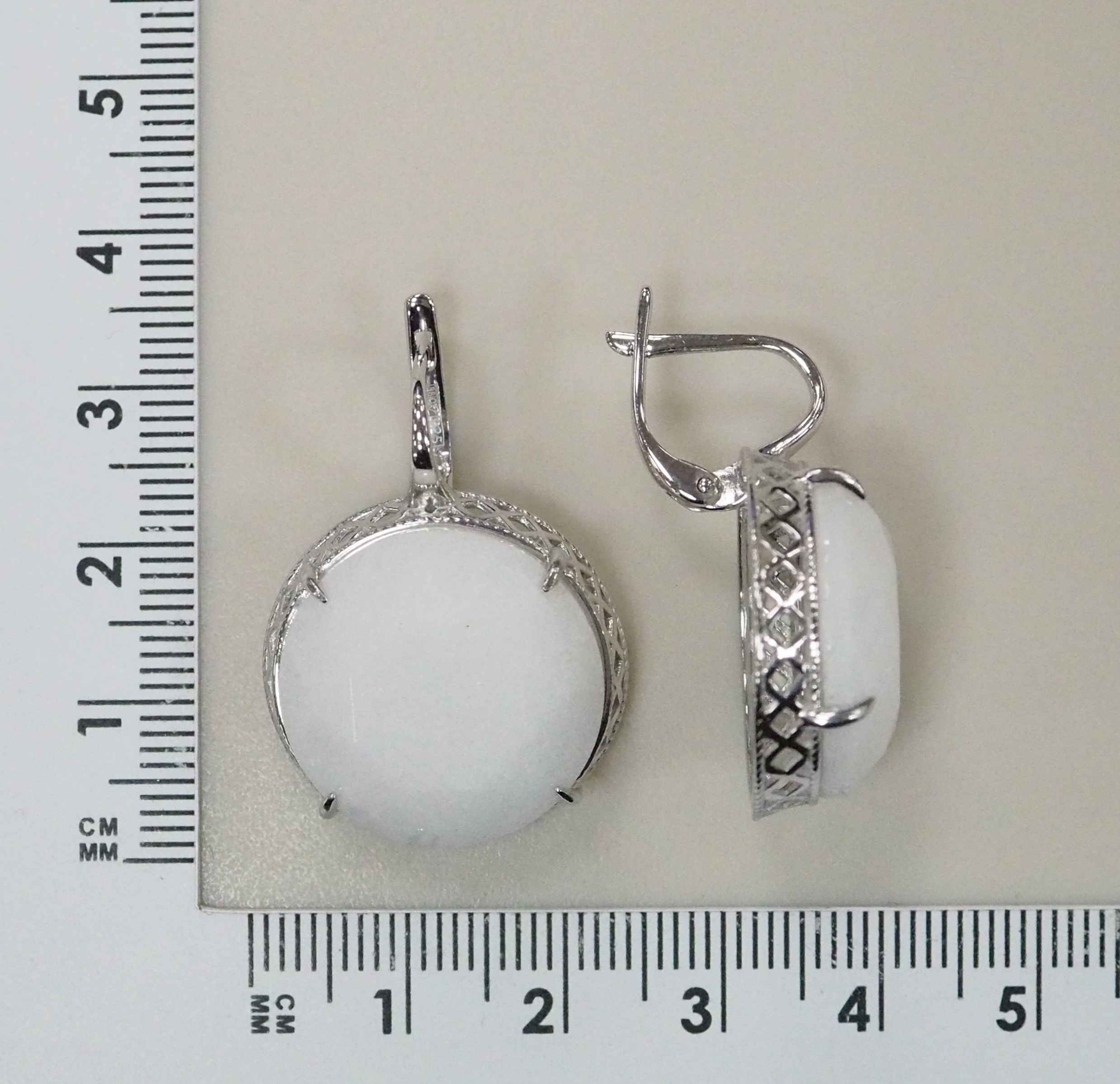 Серебряные серьги с белыми нефритами