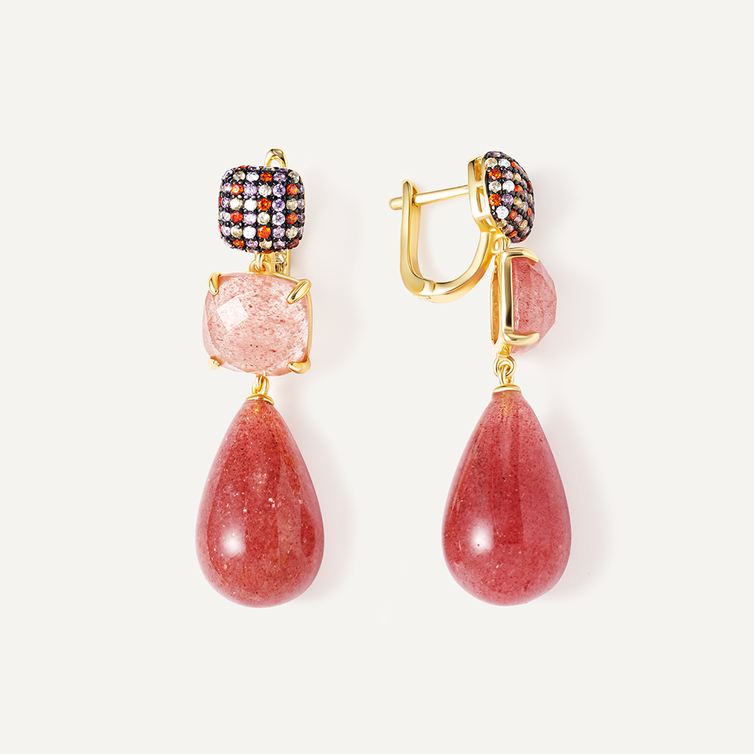 Серебряные серьги с розовым кварцем