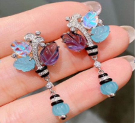 Серебряные серьги с изумрудами, сапфирами и рубина...
