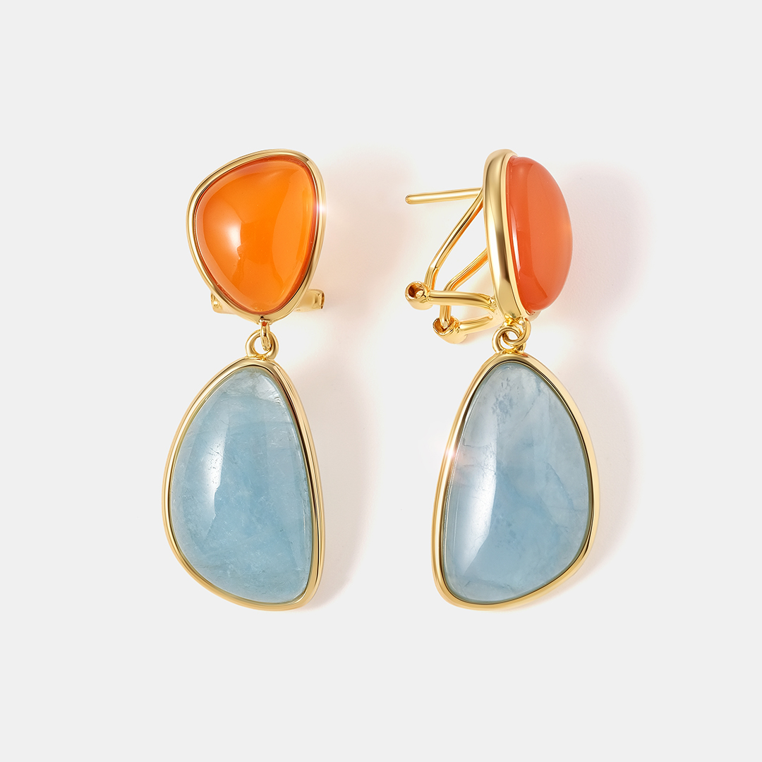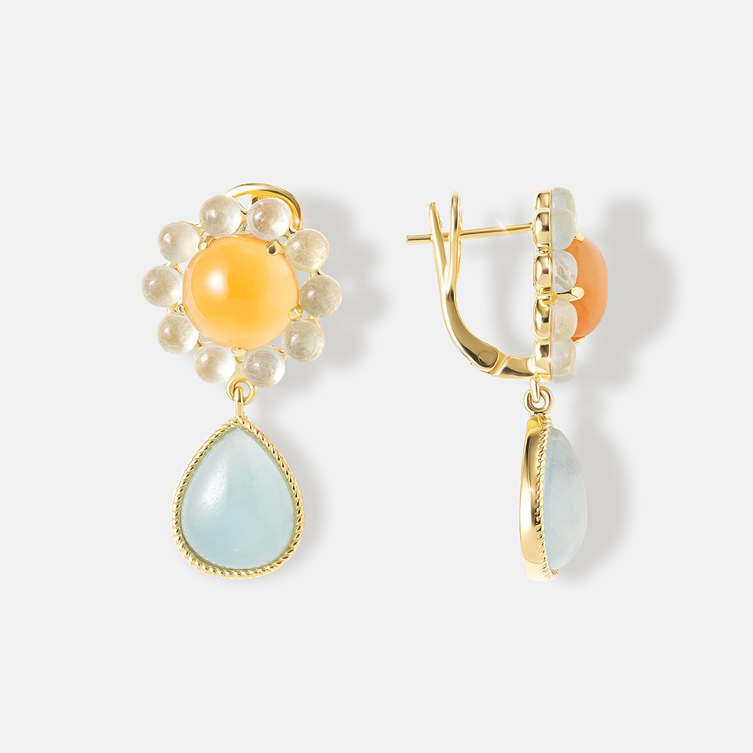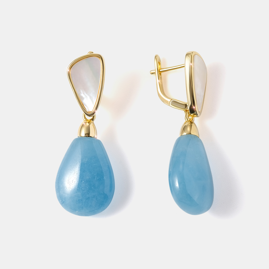 Серебряные серьги-конго с аквамаринами и халцедонами