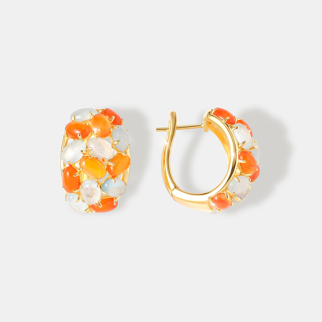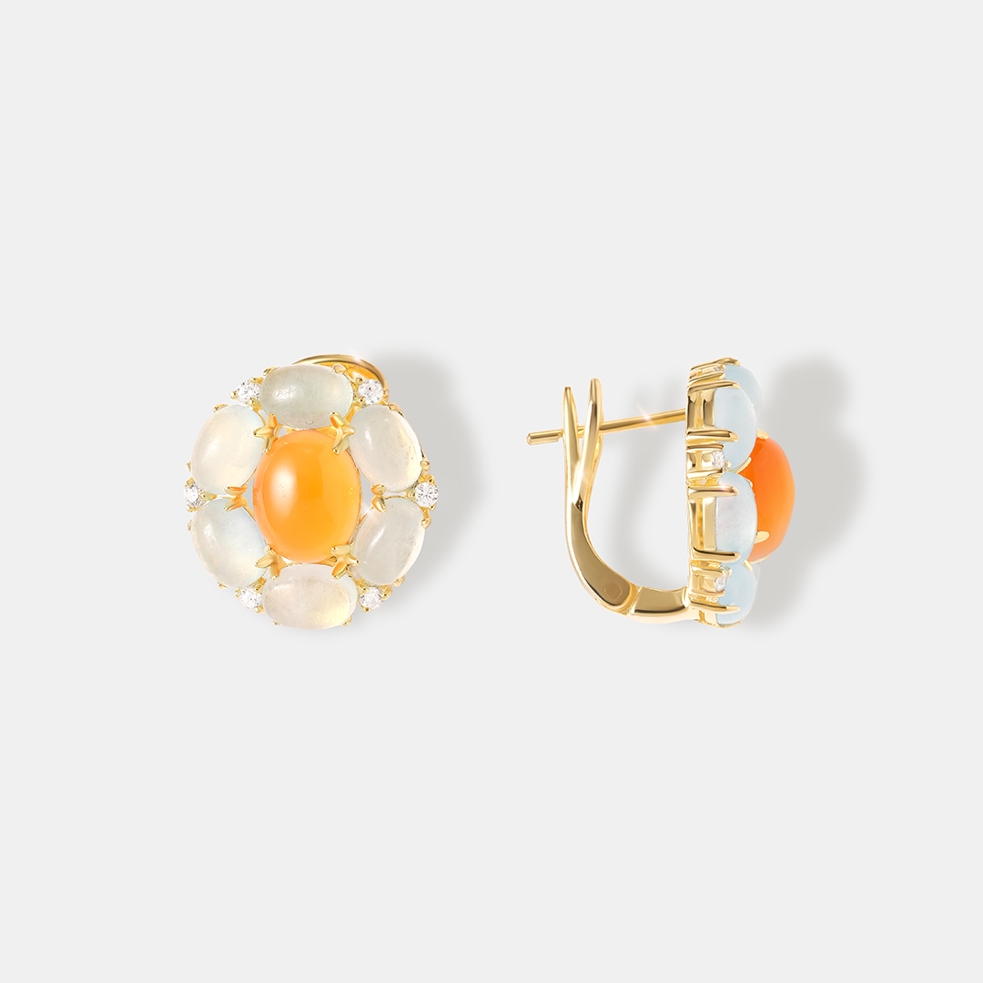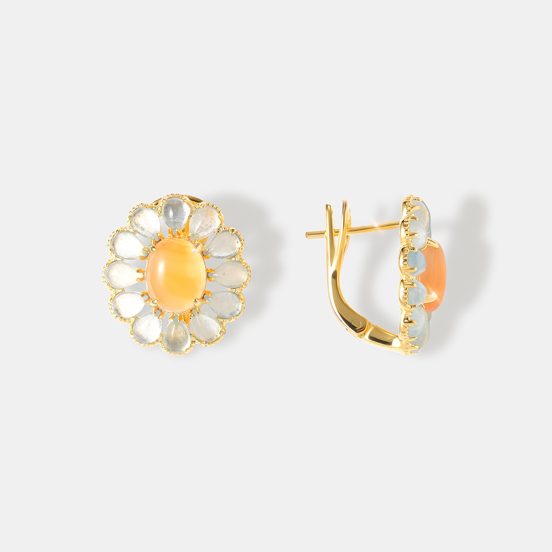 Серебряные серьги-конго с аквамаринами и халцедонами