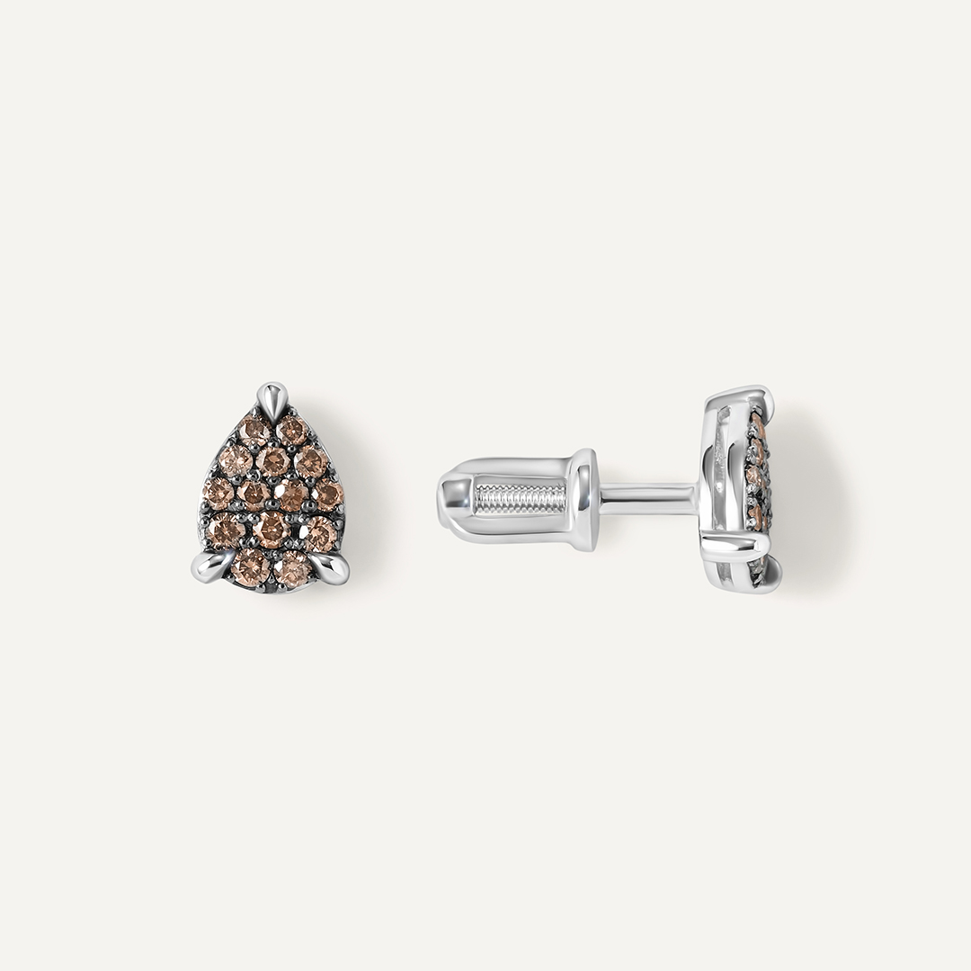 Серьги-пусеты из белого золота с коньячными бриллиантами