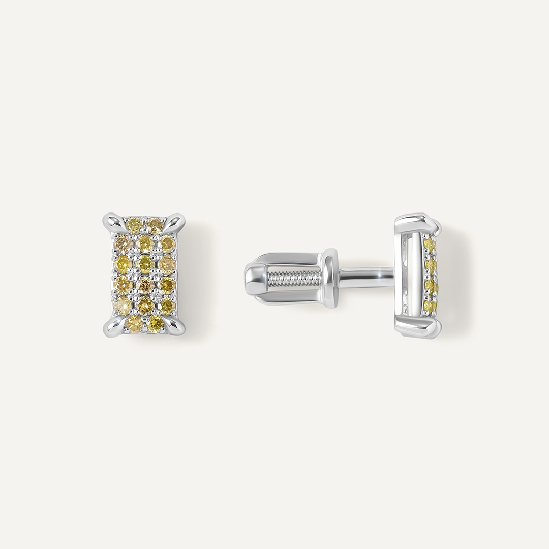 Серьги-пусеты из белого золота с желтыми бриллиантами