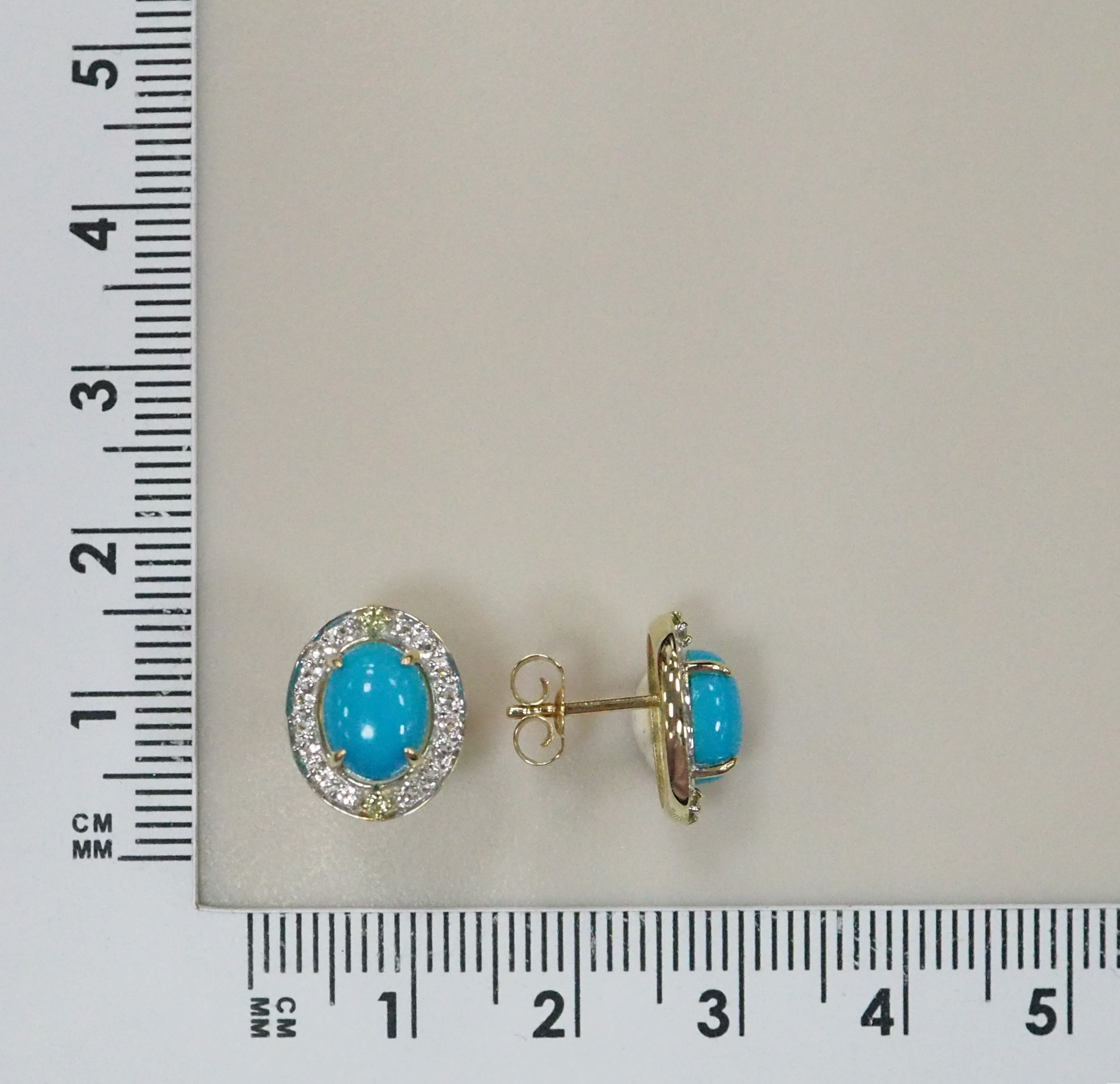 Серьги-пусеты из желтого золота с зеленой бирюзой
