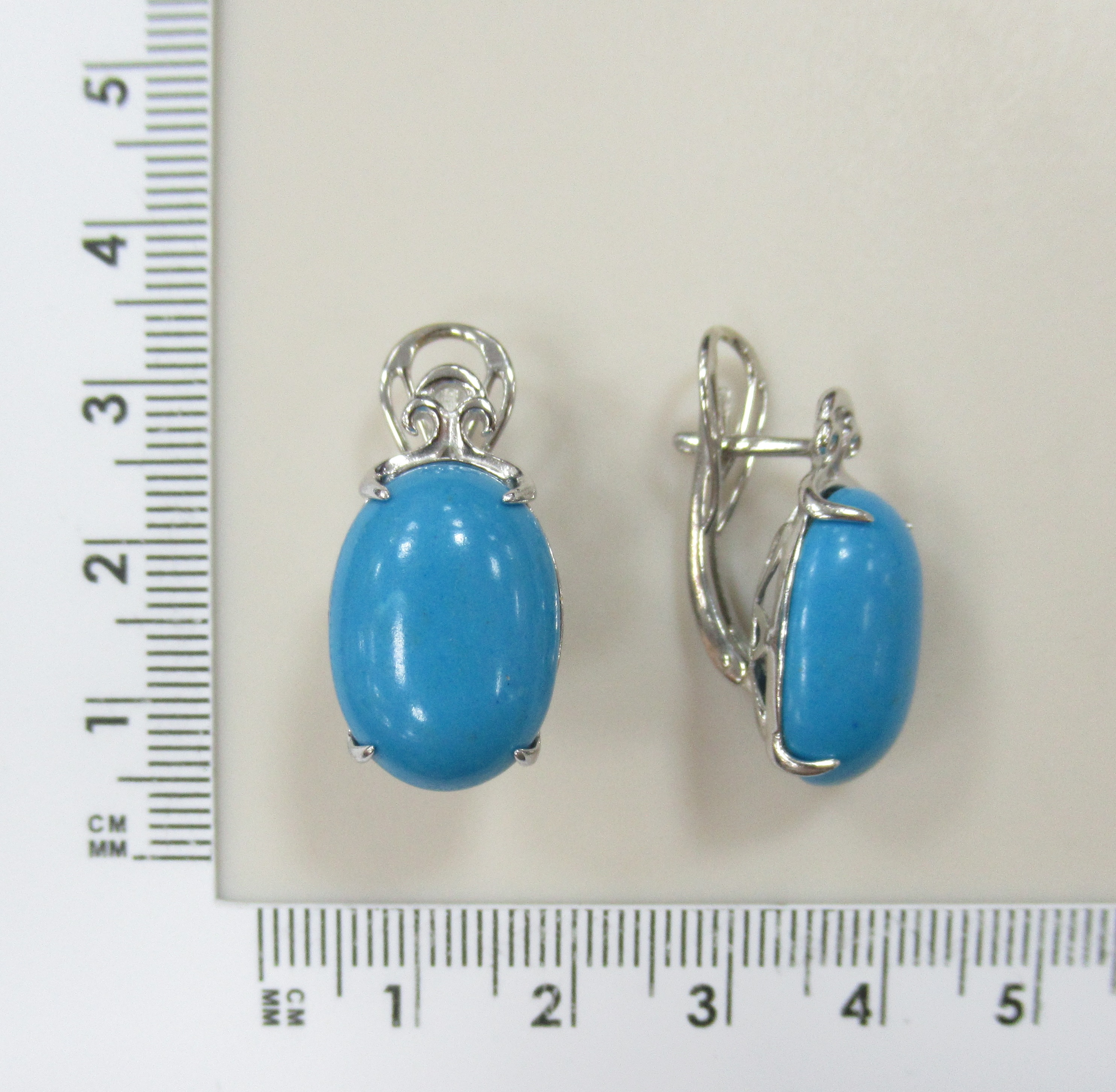 Серебряные серьги-пусеты с бирюзой 2 в 1