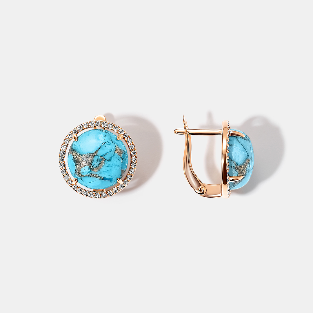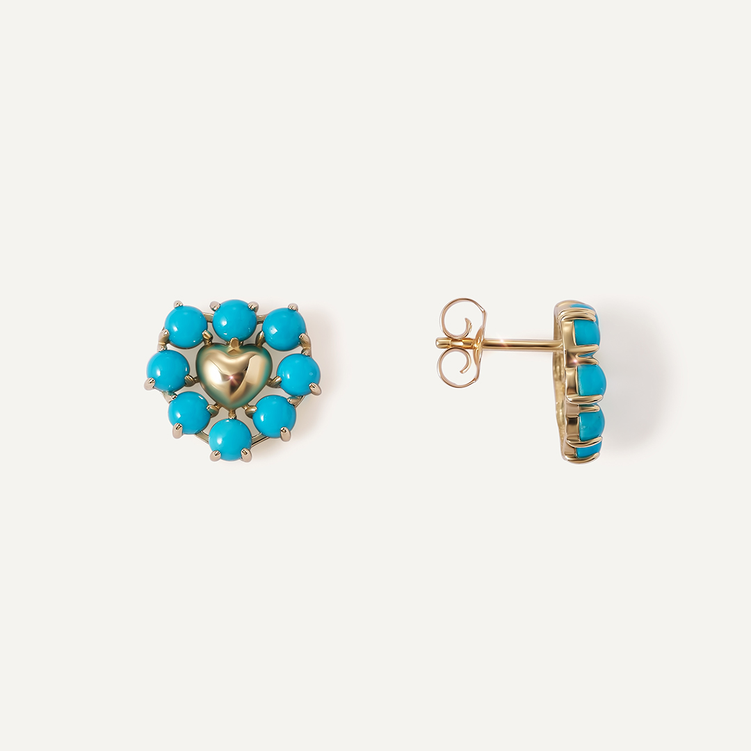 Серьги-пусеты из желтого золота с бирюзой "Сердца"