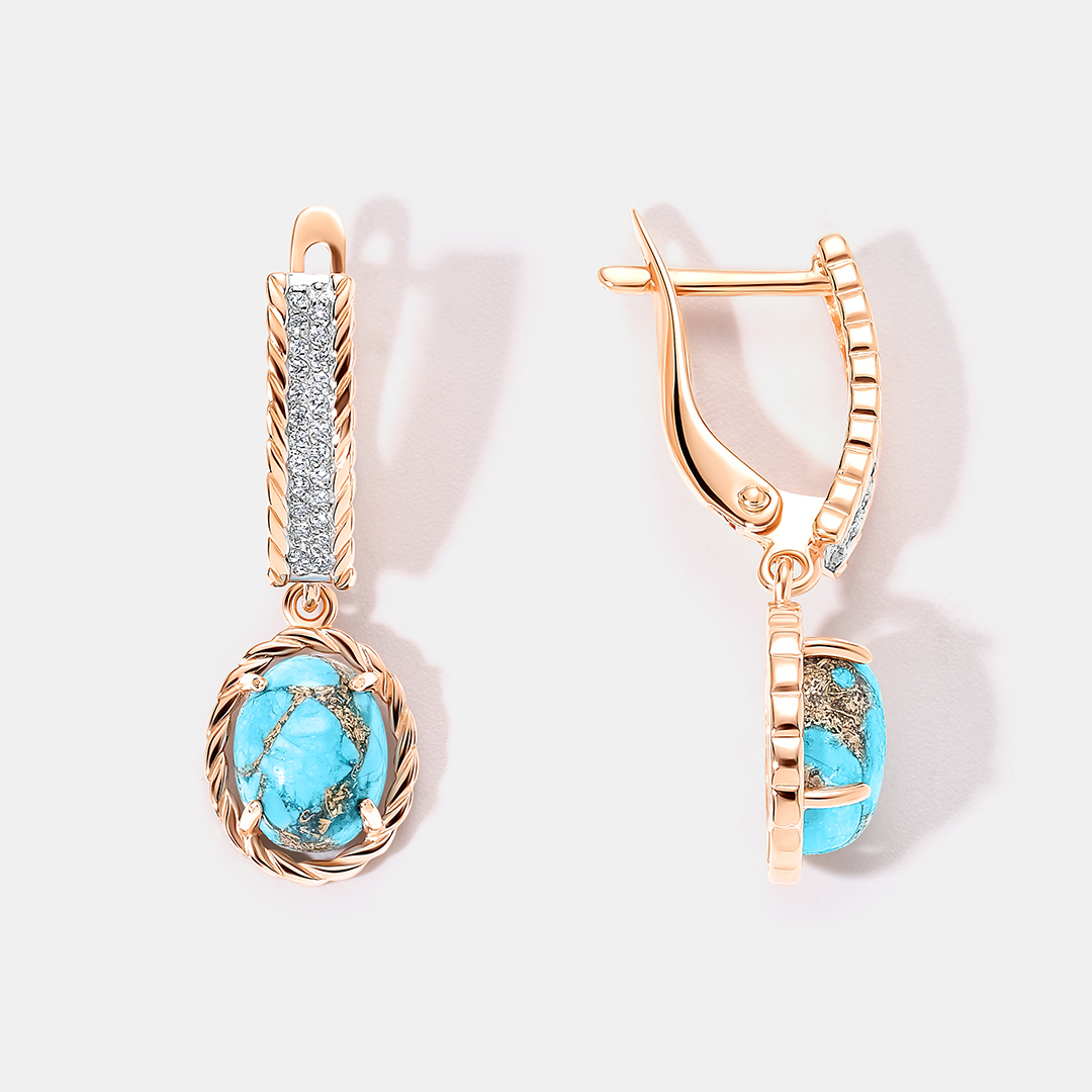 Золотые серьги 585 пробы; вставки 2 Бирюза;