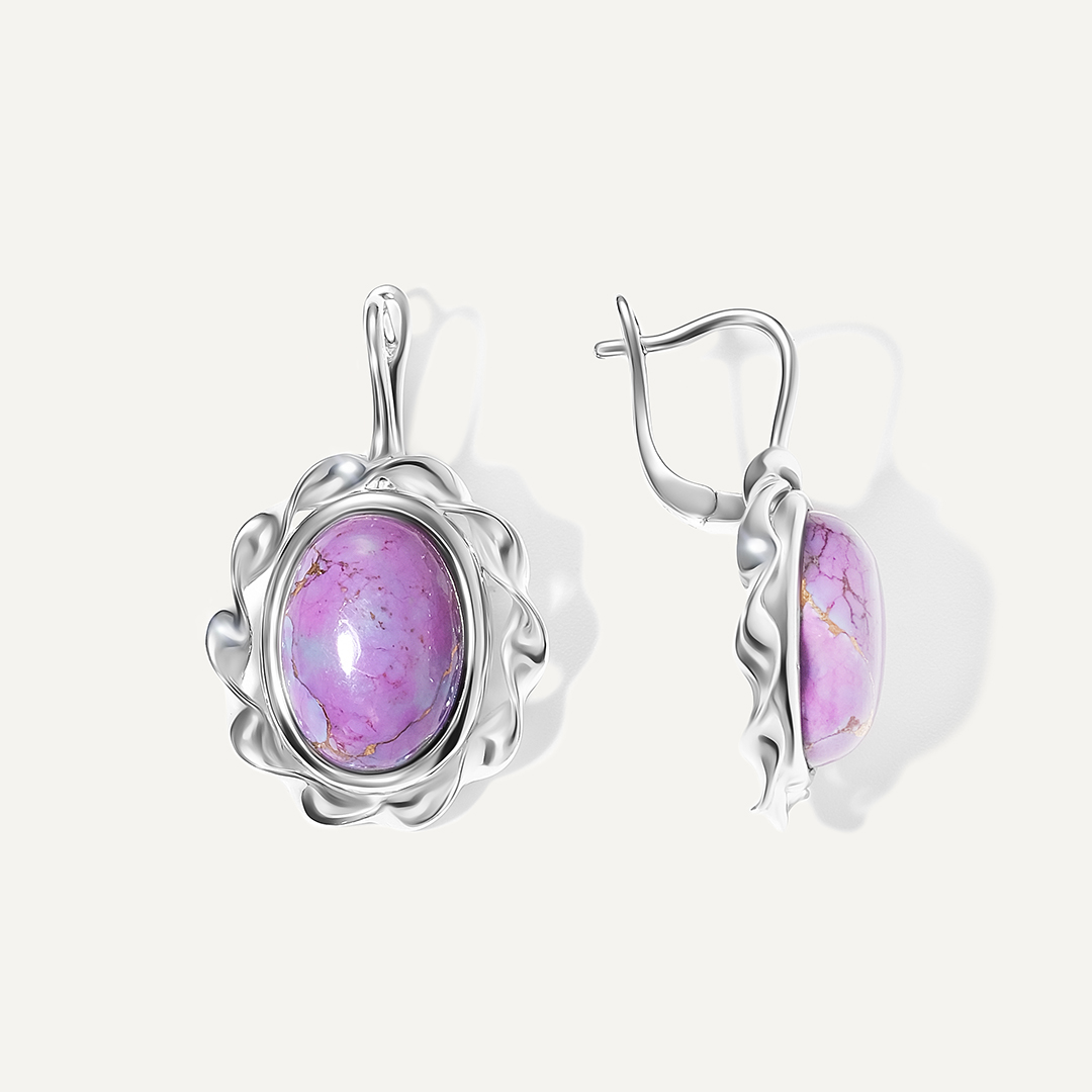 Серебряные серьги с зеленой бирюзой и турмалинами