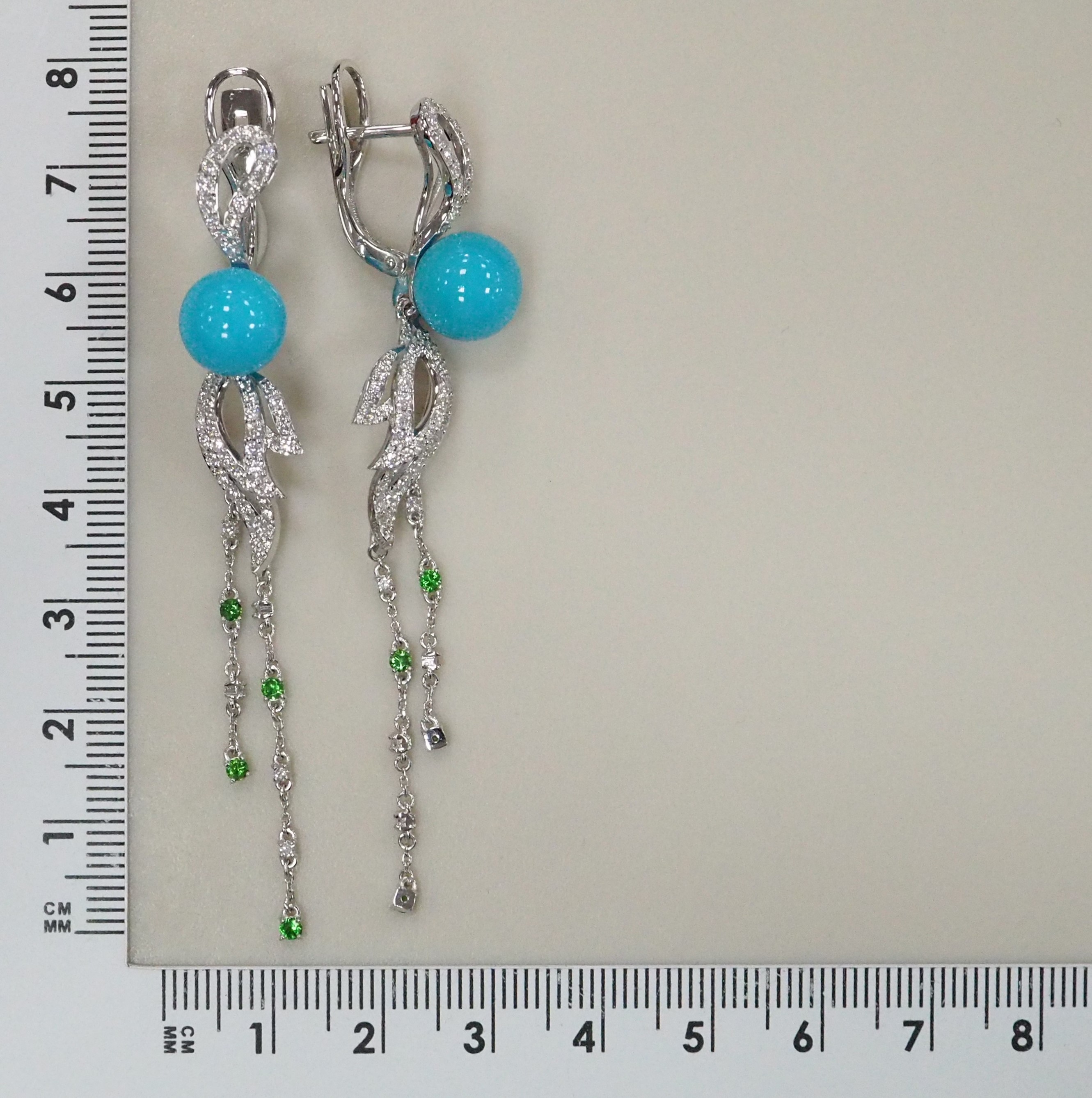 Серьги-пусеты из золота с зеленой бирюзой "Цветы"