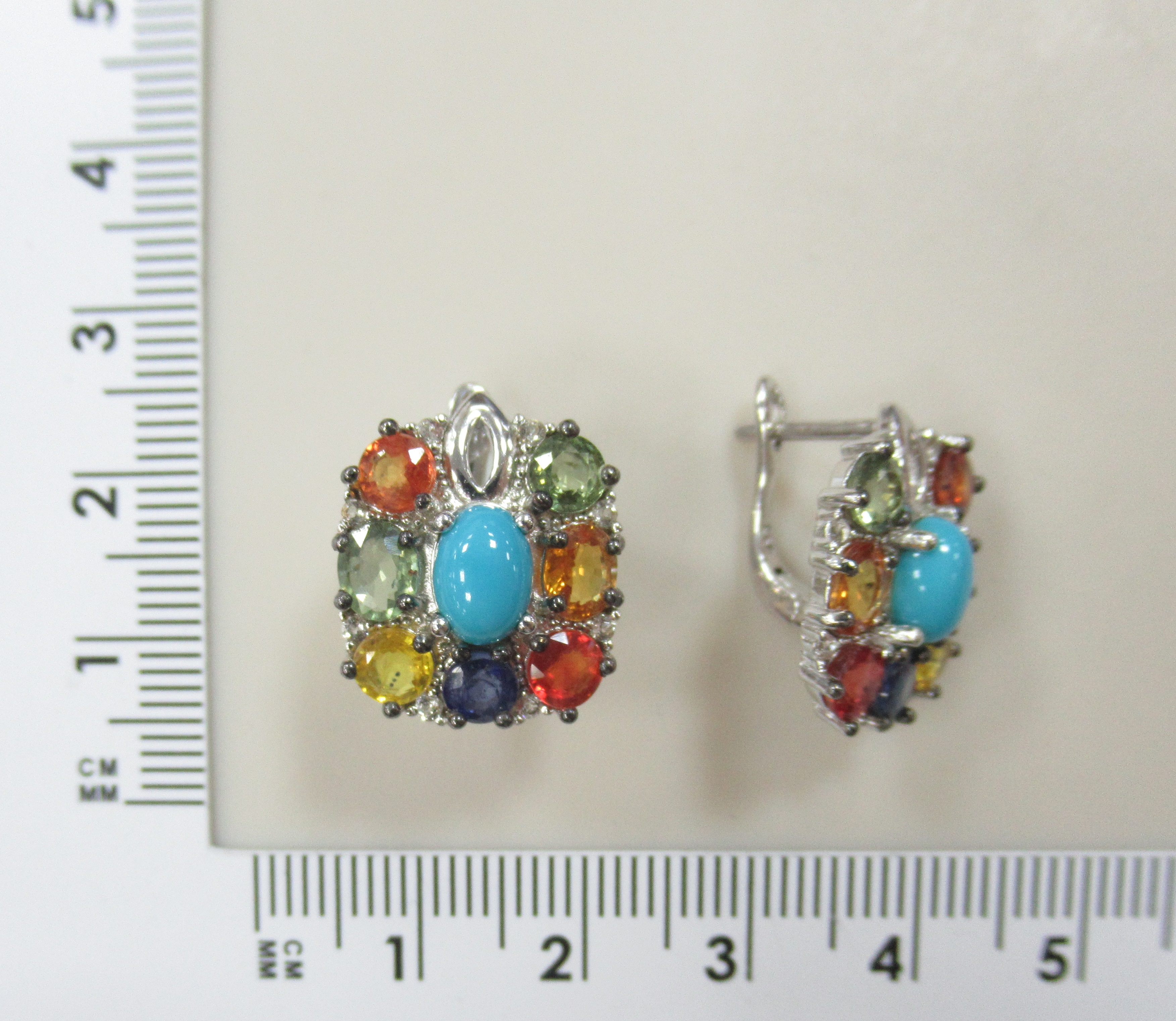 Серебряные серьги с бирюзой и мультисапфирами