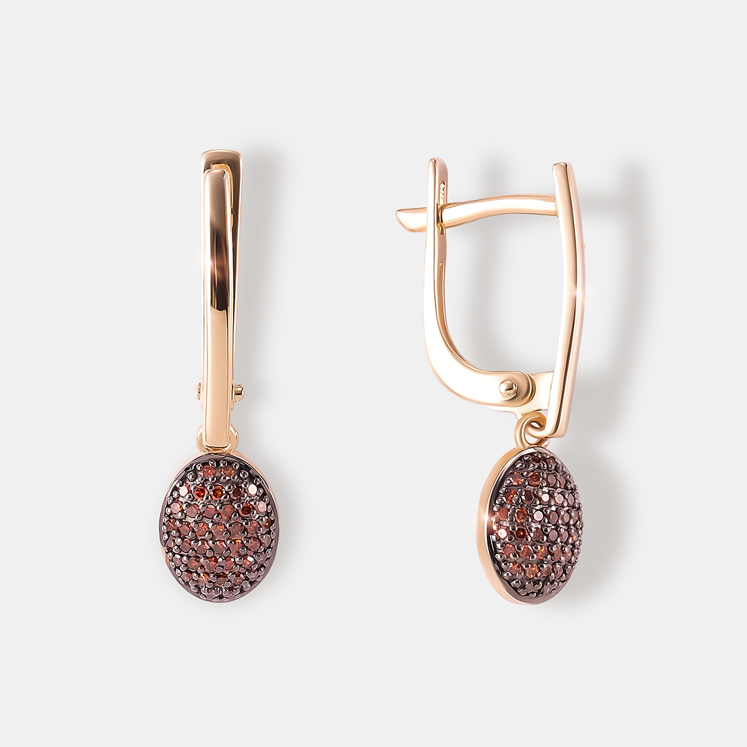 Серьги из желтого золота с оранжевыми бриллиантами