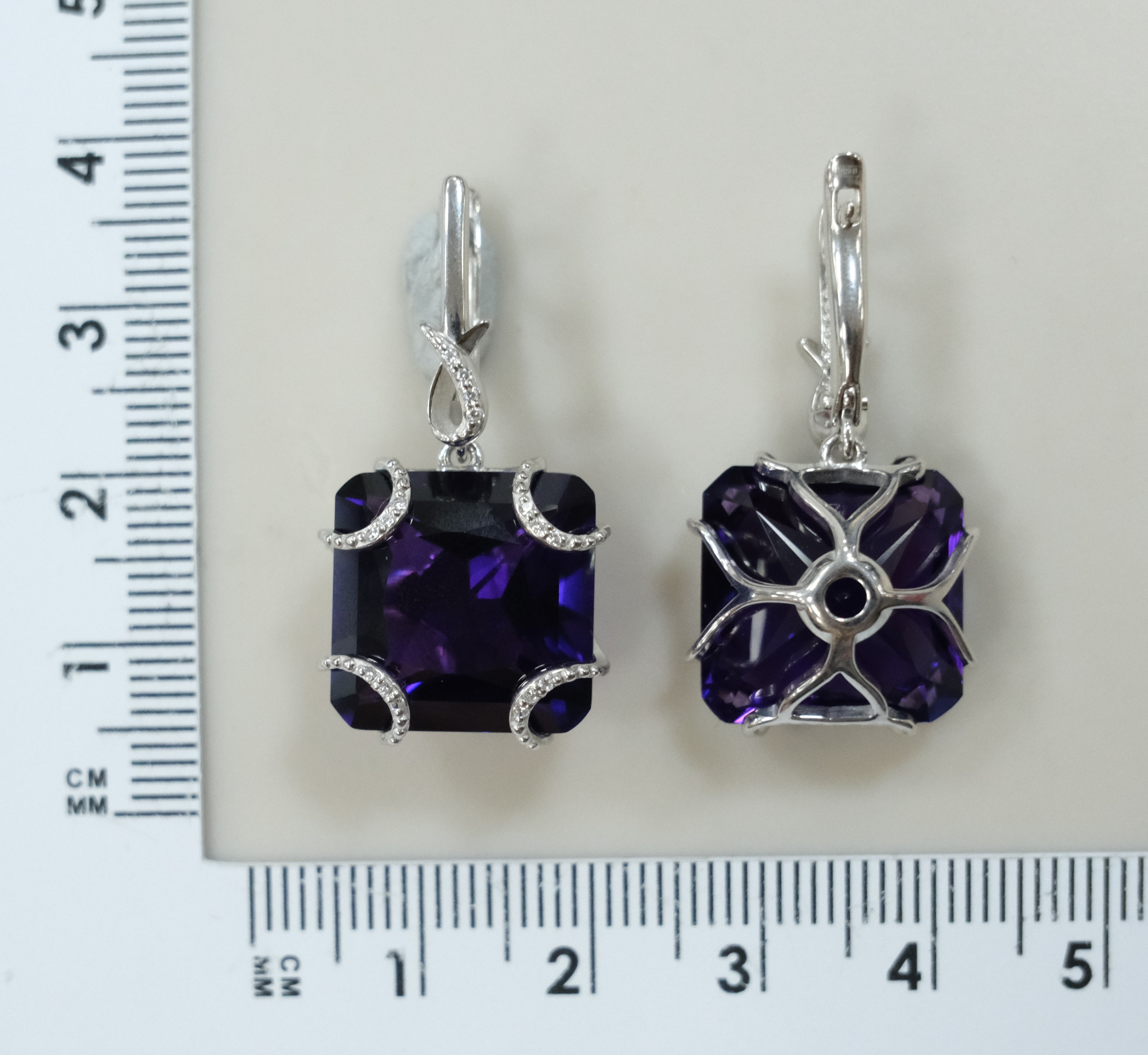 Серебряные серьги с фиолетовыми муассанитами