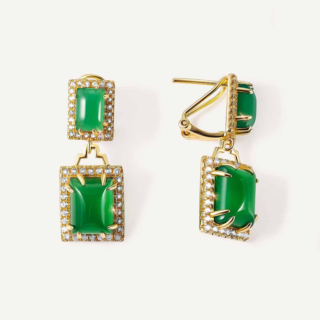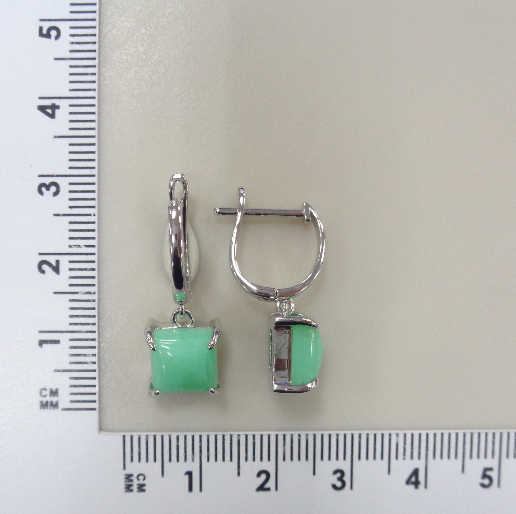 Серебряные серьги с зелеными халцедонами