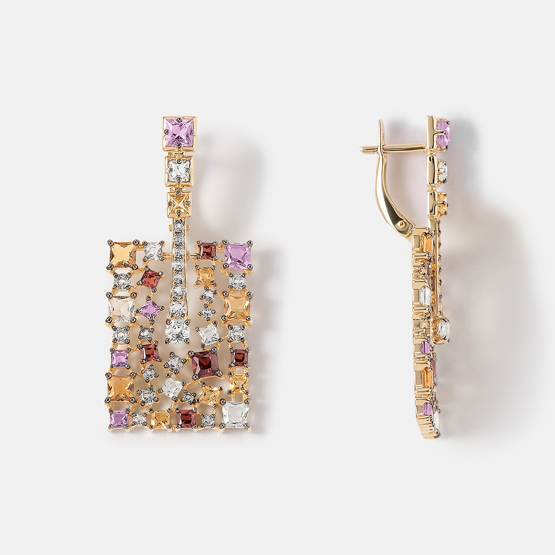 Серебряные серьги 925 пробы; вставки Эмаль разноцв.; 2 Фианит бесцв.;