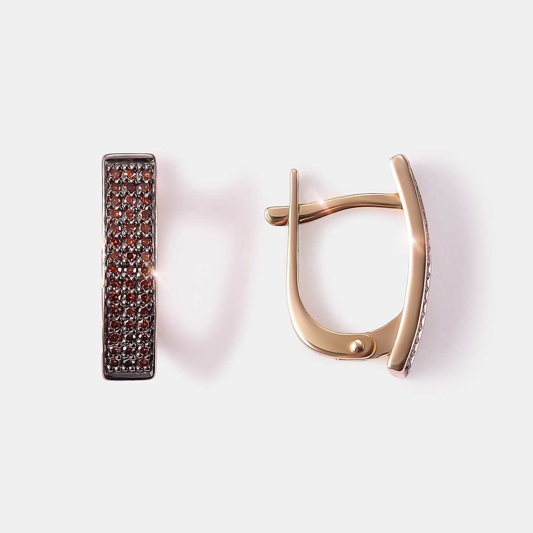 Серьги-пусеты из комбинированного золота с бриллиа...
