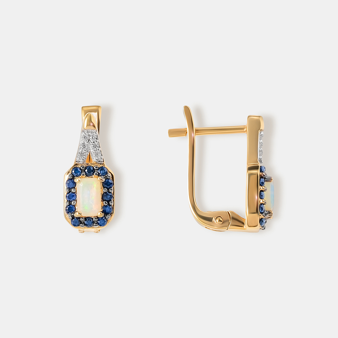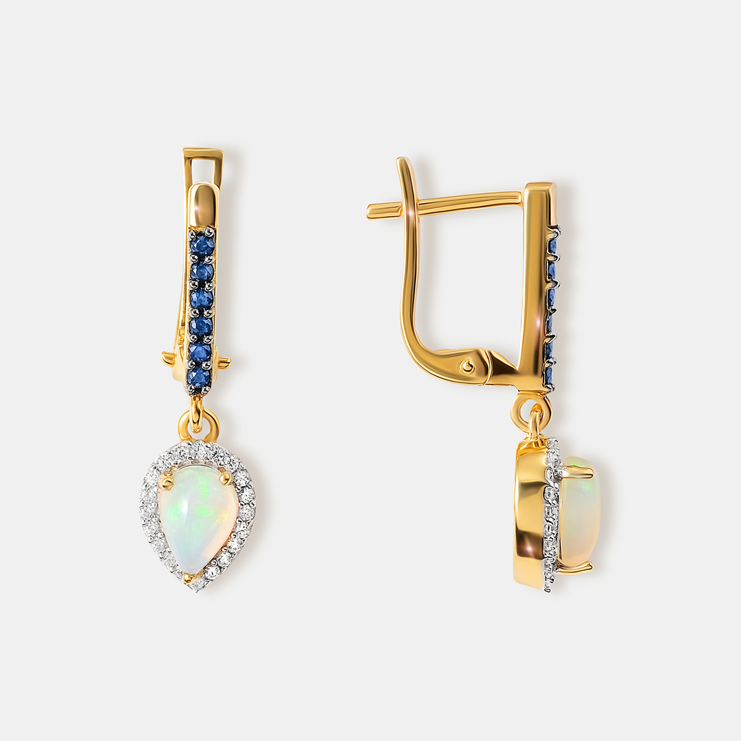 Золотые серьги-пусеты 585 пробы; вставки 2 Топаз swiss;