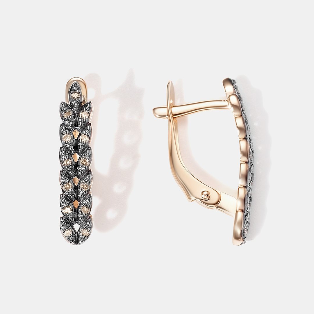 Серьги из золота с сапфирами и коньячными бриллиантами