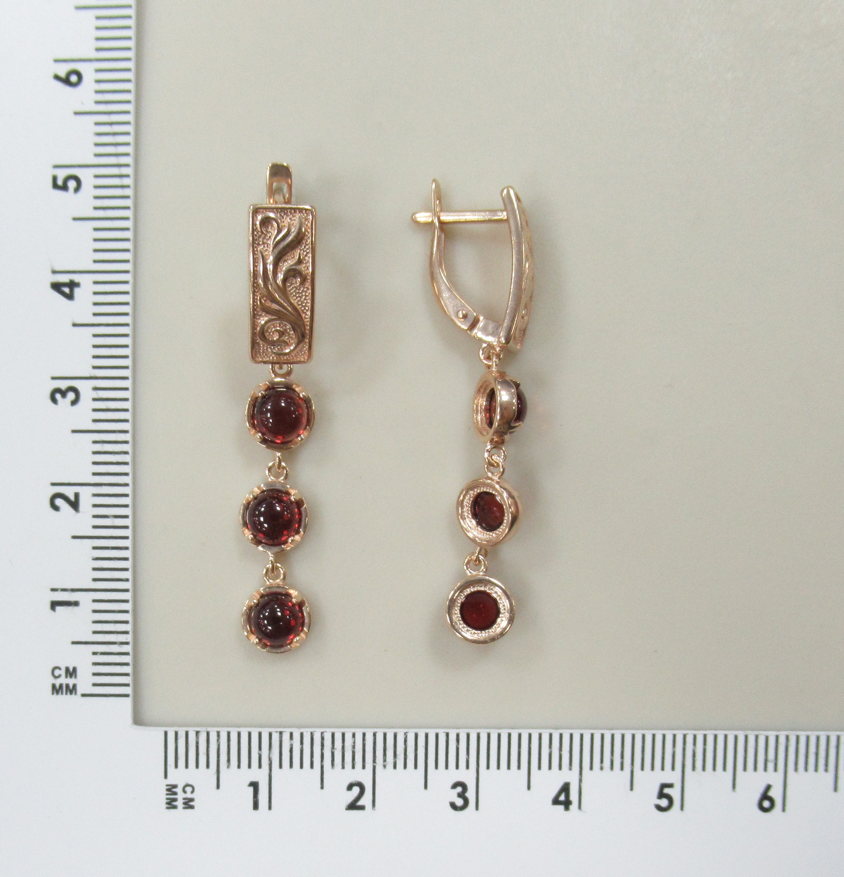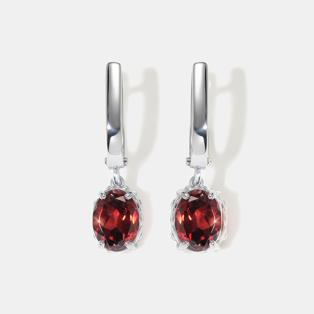 Серебряные серьги-протяжки с гранатами "Мотыльки"