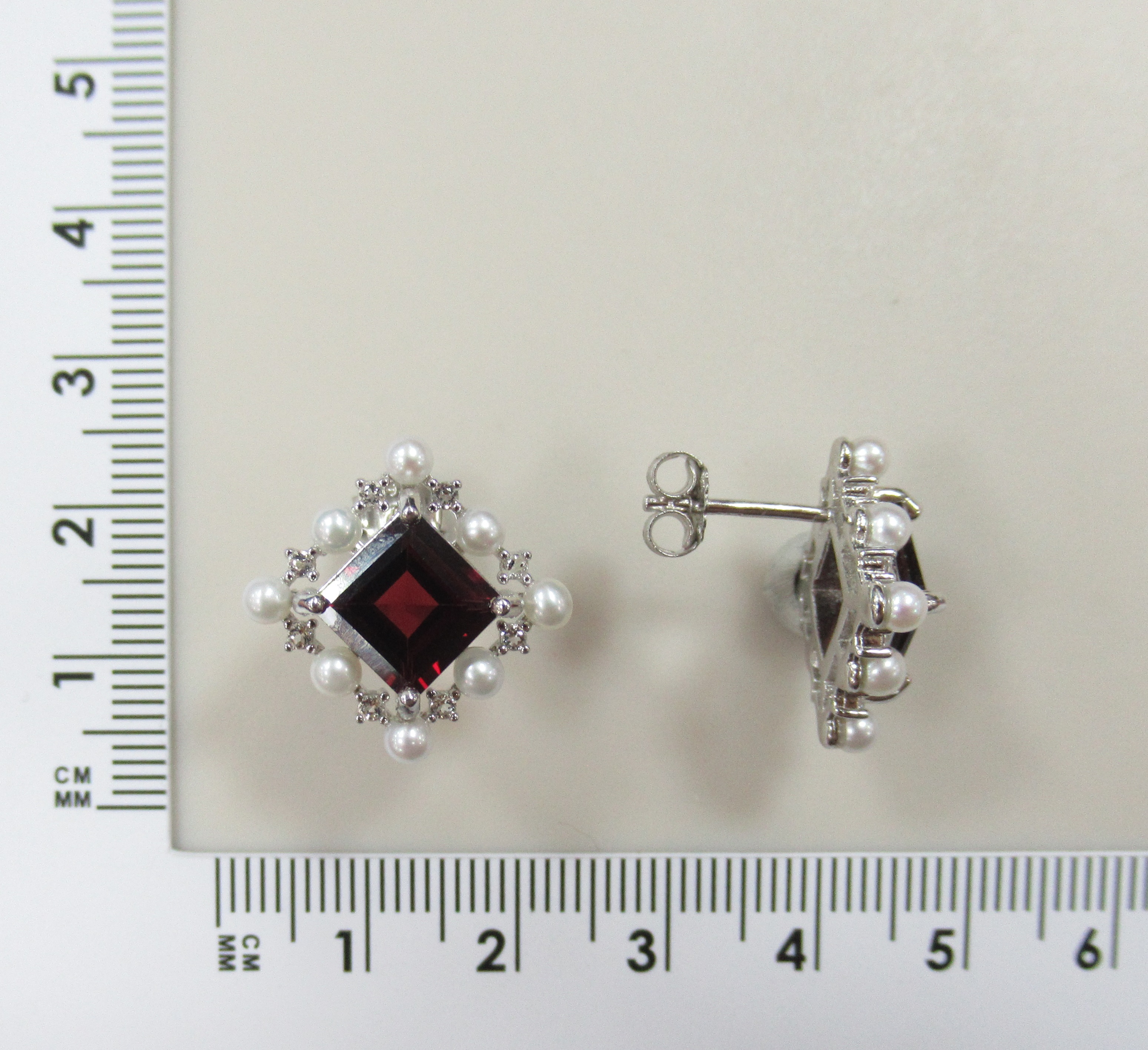 Серебряные серьги-пусеты с гранатами и жемчугом