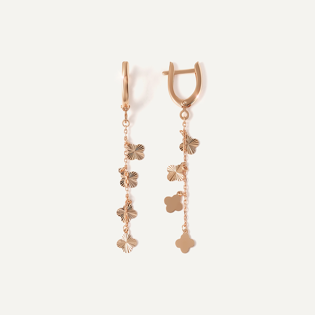 Серьги-протяжки из желтого золота с агатами "Клевер"