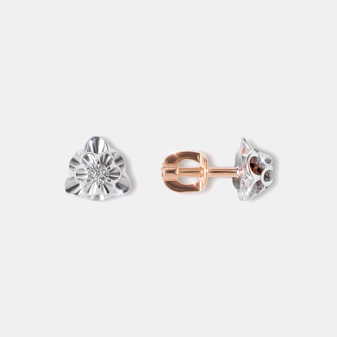 Серьги-пусеты из комбинированного золота с бриллиа...