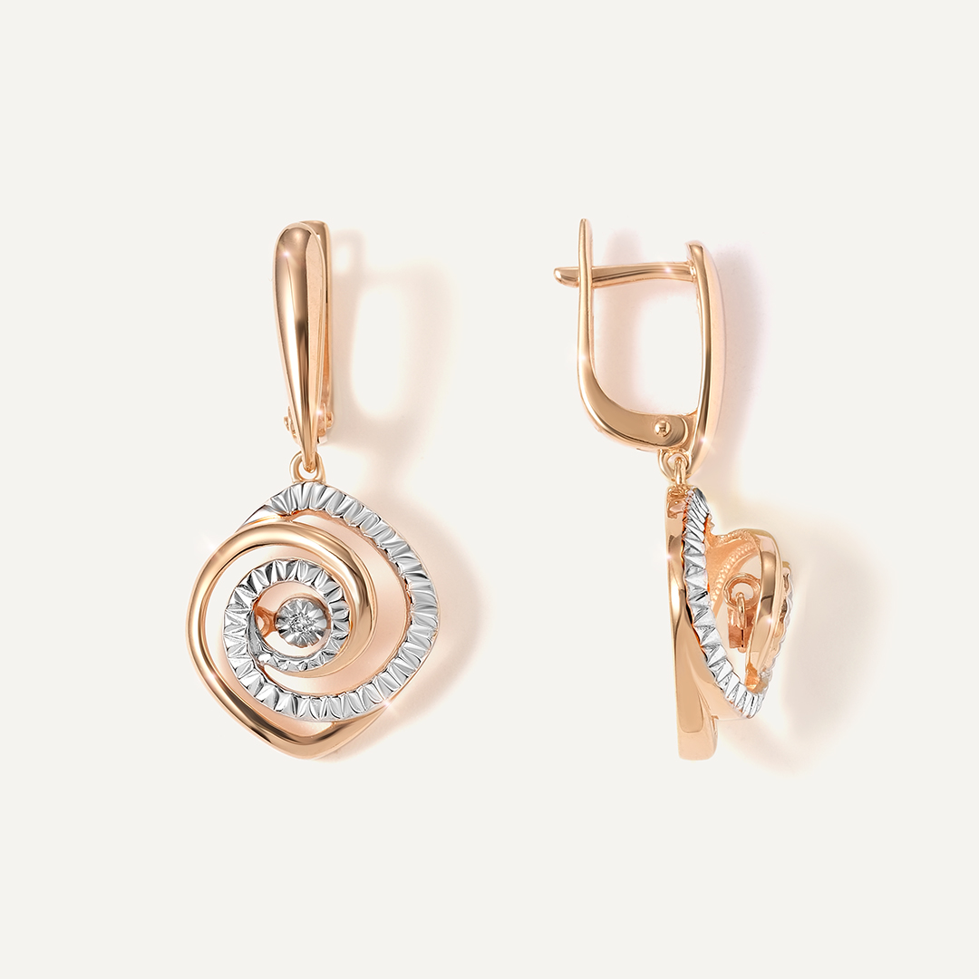 Серьги-пусеты из комбинированного золота с бриллиантами
