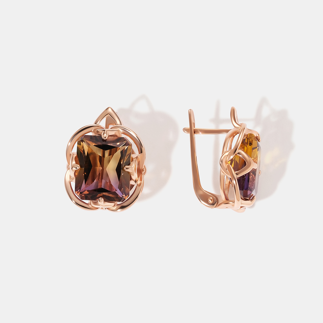 Серьги-пусеты из комбинированного золота с бриллиа...