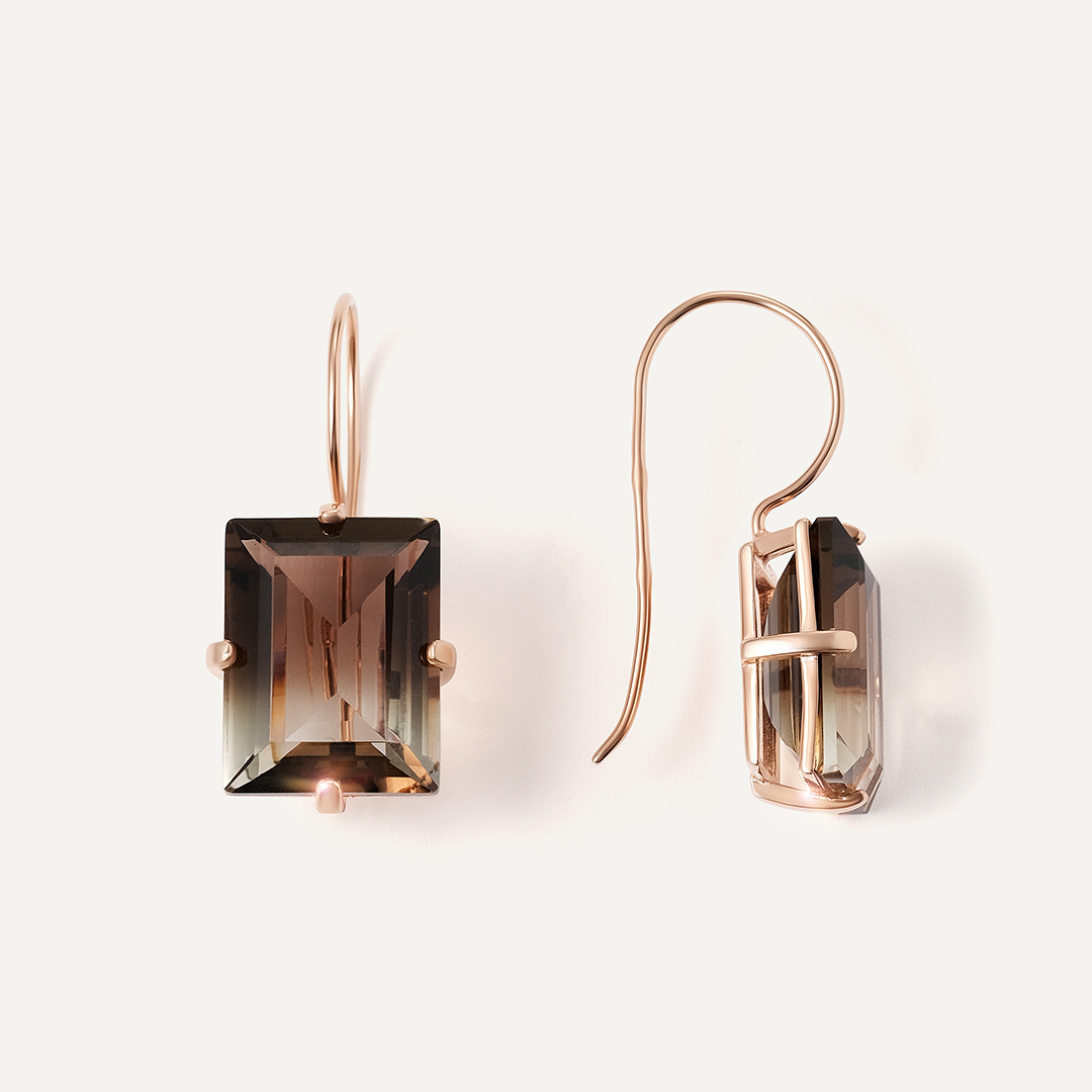 Серебряные серьги-протяжки с розовыми бриллиантами "Клевер"