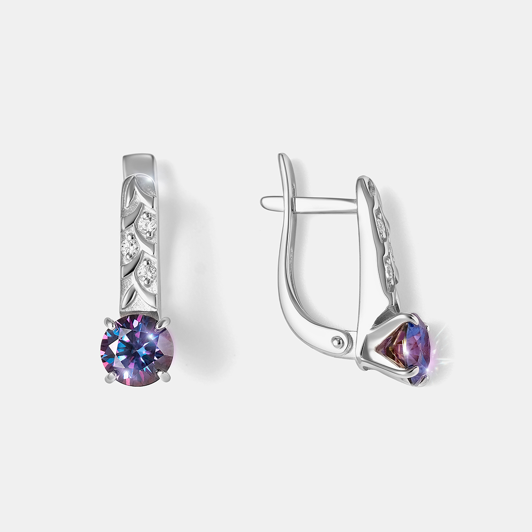 Серебряные серьги с фиолетовыми муассанитами