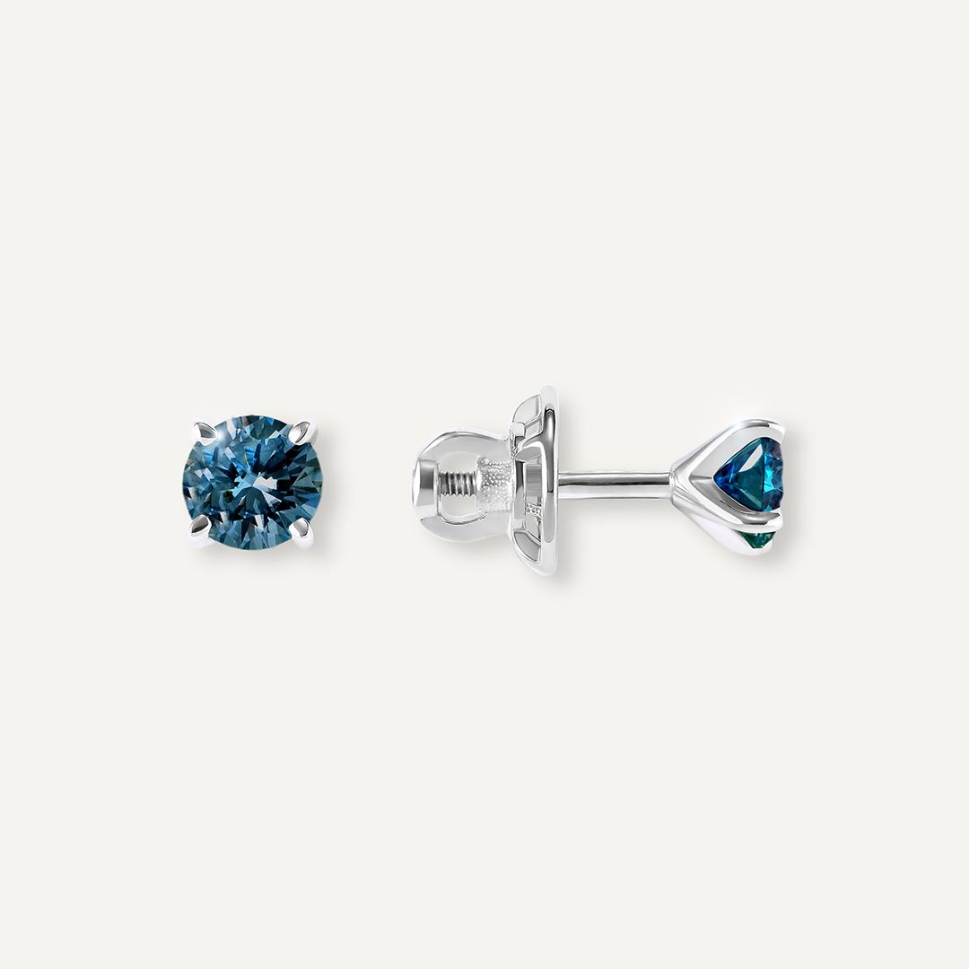 Серебряные серьги-пусеты с голубыми муассанитами