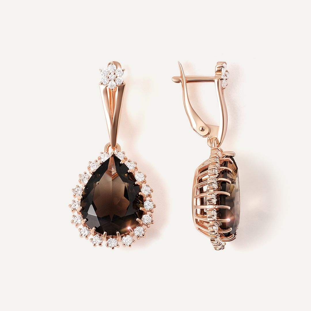 Серьги-пусеты из комбинированного золота с бриллиа...
